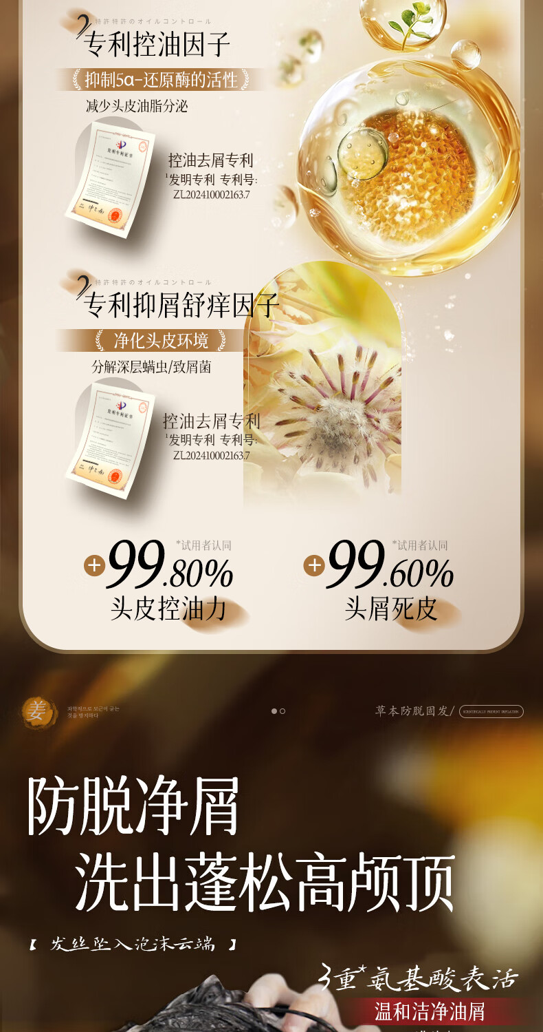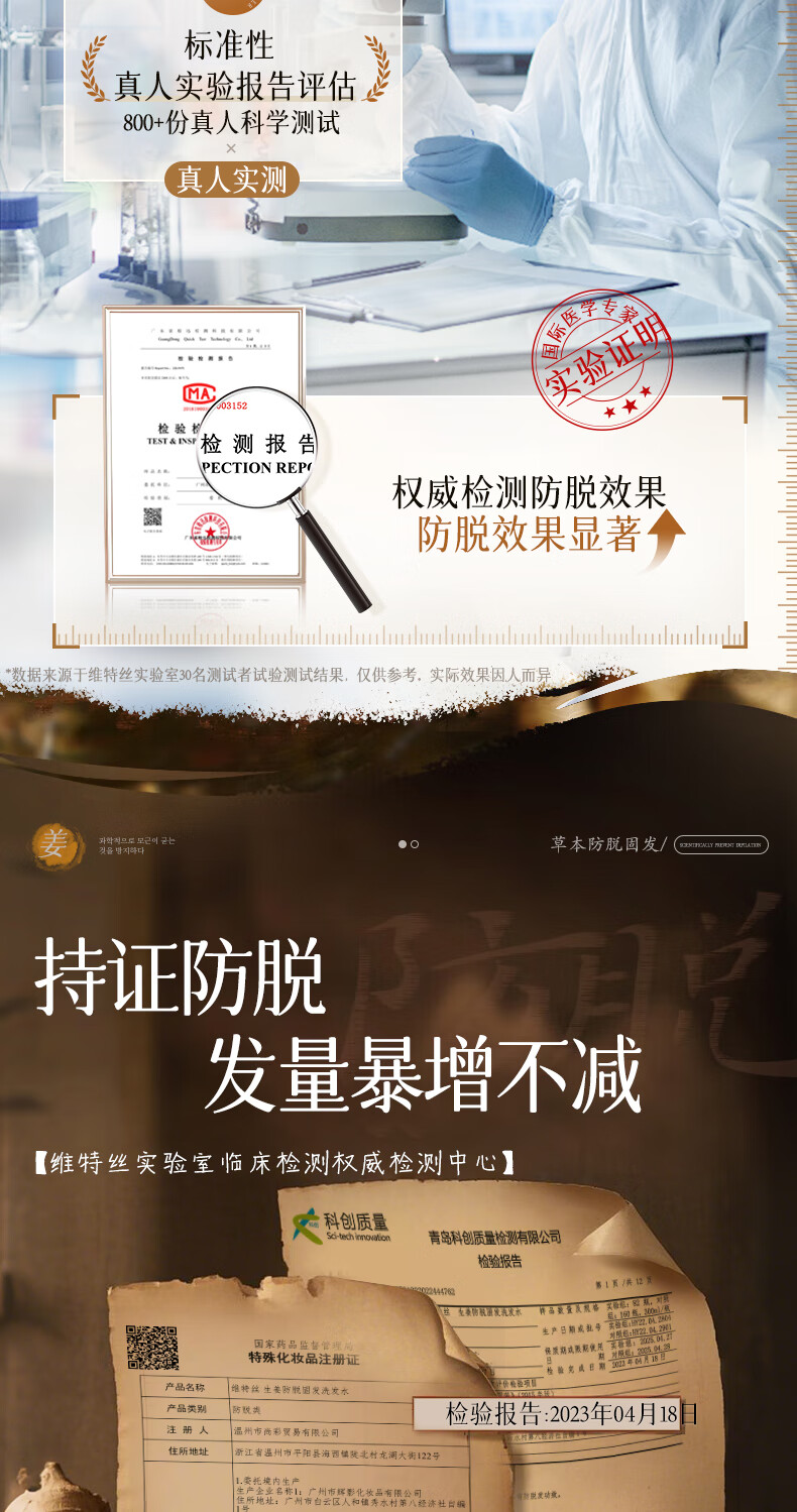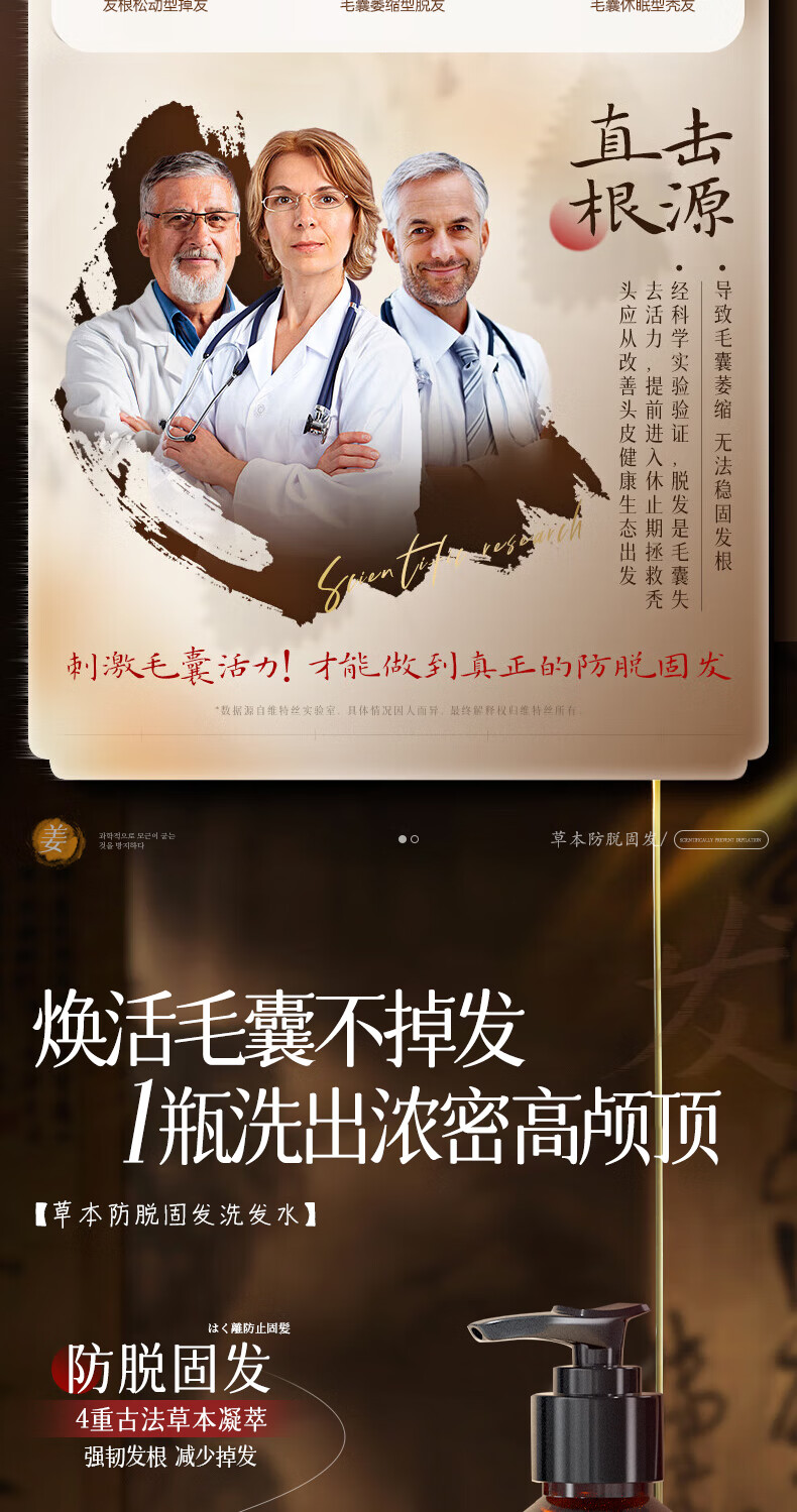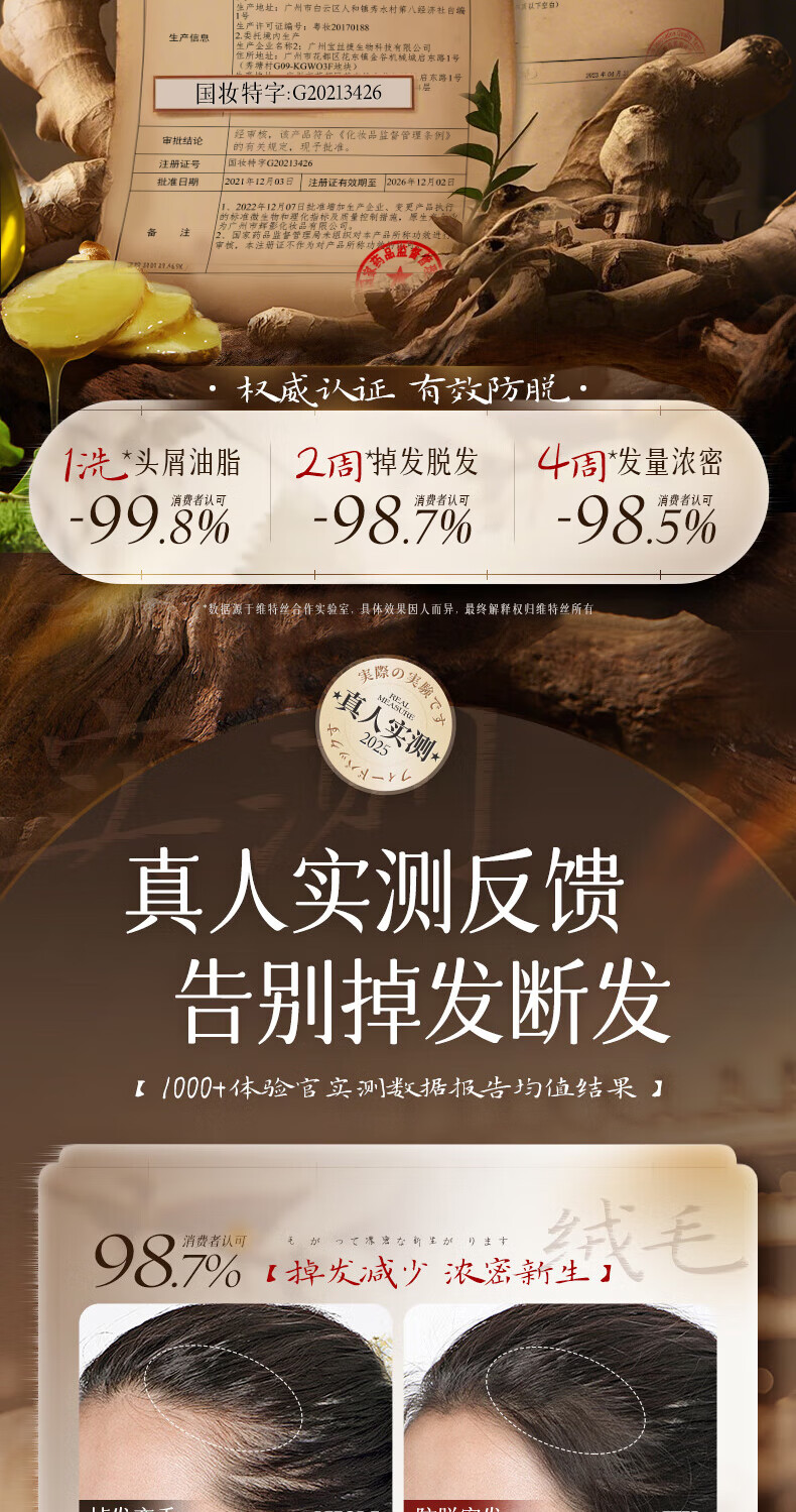 维特丝防脱育发洗发水生姜固发侧柏叶控油去屑洗头膏露男女士金榜第1