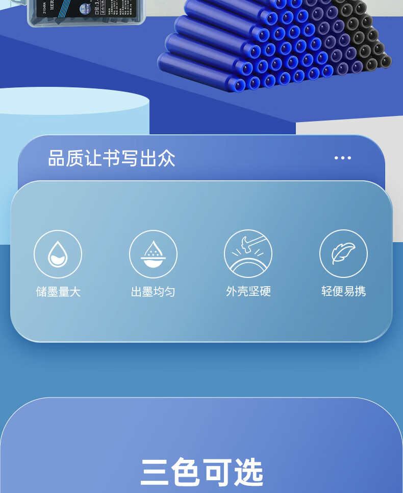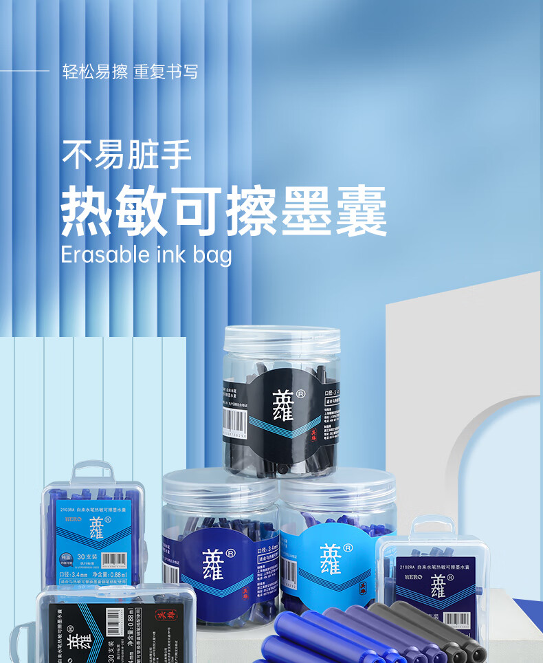 英雄(HERO)【热门商品】热可擦墨囊 2104RA练字可替换热敏摩易擦 3.4mm口径 30支装 黑色
