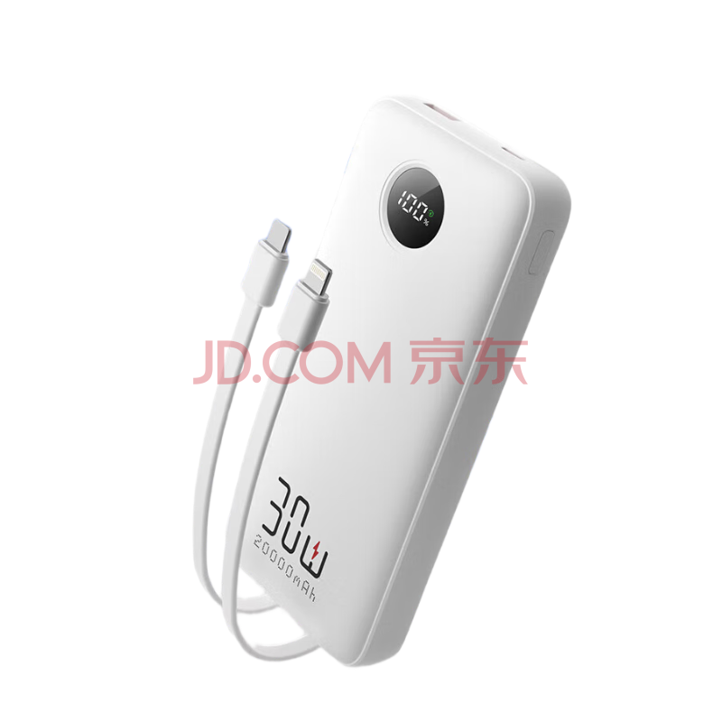 京造30W快充自带线20000毫安大容量充电宝3c认证可上飞机