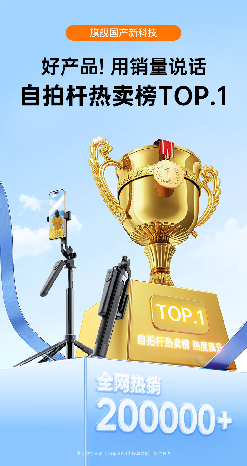 智国者【TOP榜第1名】自拍杆手机支架自动三脚360度旋转防