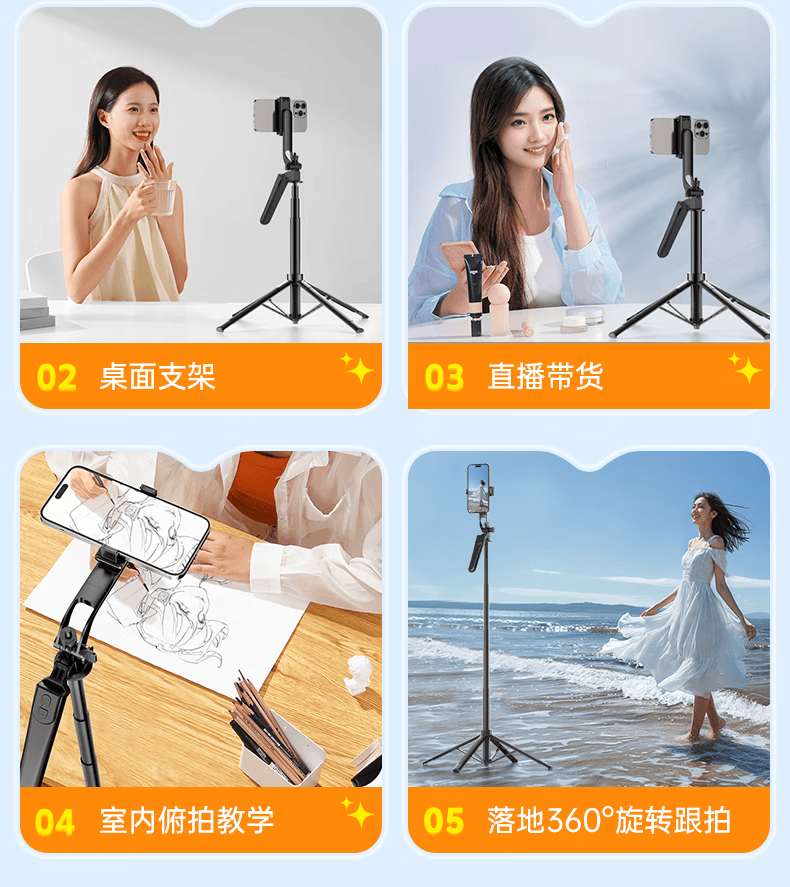 智国者【TOP榜第1名】自拍杆手机支架自动三脚360度旋转防抖跟拍摄落地便携式旅游直播神器旅行演唱会