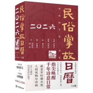 著名民俗学家仲富兰教授领衔主编的《民俗掌故日历》系列持续探索中华民俗的深厚魅力,7.0版(2026年)聚焦于“中国古典诗词与民俗文化”这一璀璨主题,恰如点睛之笔:“民俗厚土培诗韵,诗韵繁花映俗风”。中国古典诗词与民俗文化,两者共生共荣,互动映照。古典诗词是民俗的“雅韵华章”,以其高雅优美、富有韵律的形式,提炼并升华了民俗中的情感、场景与文化精髓;而民俗则是滋养古典诗词的“丰沃厚壤”,源源不断地为诗词创作提供素材、主题与深厚的文化根基。二者相互依存,共同铸就中华文化的瑰宝。本版日历匠心独运,精选古往今来描绘岁时节令、民俗风情的诗词名篇佳作,以“每日一诗”的亲切形式,带您领略诗词与民俗交融的魅力。您将在王安石的《元日》中感受春节爆竹驱邪、屠苏迎新、桃符换旧的生动场景;在辛弃疾《青玉案·元夕》中沉浸于元宵灯会的华美璀璨与人间欢腾;随杜牧《清明》体会清明时节的雨丝情思;从文秀《端午》追溯端午习俗的深厚渊源;品味秦观《鹊桥仙》编织的七夕浪漫情笺;在苏轼《水调歌头》的中秋咏叹里共鸣于月圆人圆的期盼与人生哲思;借王维《九月九日忆山东兄弟》抒发重阳登高的亲友情愫;从杜甫《小至》感知冬至阳生的气象更新;于陆游《十二月八日步至西村》中感受腊八馈粥的乡村暖意……这些诗词,不仅是文学瑰宝,更是民俗风情的鲜活载体与深情写照。通过每日沉浸于一首经典节日诗词,《民俗掌故日历:7.0版.2026》让您在感受诗词韵律意境之美的同时,深入理解民俗节日的文化内涵与情感寄托,有效促进民俗文化的传承与传播,让民俗文化在日常生活中焕发恒久光彩。