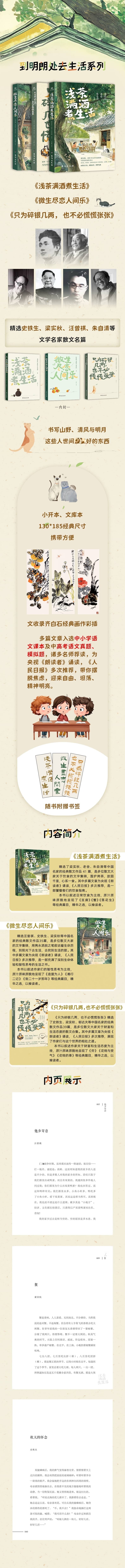 书中所录文章以各个作家在人民文学出版社所出版本为底本,参考了包括作家出版社、译林出版社、北京十月文艺出版社等多部不同年份出版的读本编辑而成,为最大程度上保留原作精髓,对部分字词及标点符号用法,譬如“的、得、地”都依循了原作。因所选文章成书年份不同,书中不同篇目中的字词用法并不统一,特此说明。