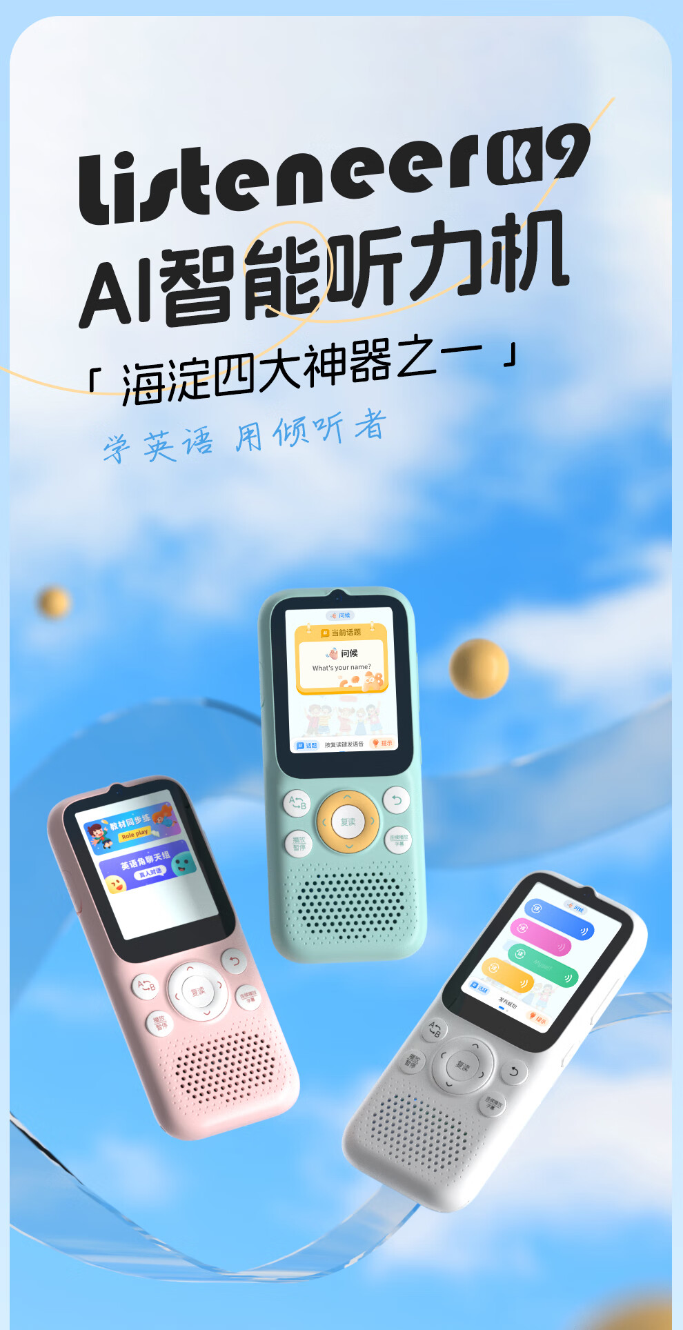 Listeneer复读机倾听者K9 雅思KET教材同步课内随身听中考高考磨耳朵听力宝AI智能英语听力学习机 蓝64G