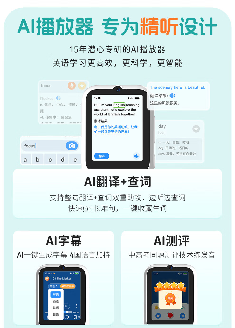 听力熊T8听力宝伴学机英语听力随身听复读机研学机拍学机