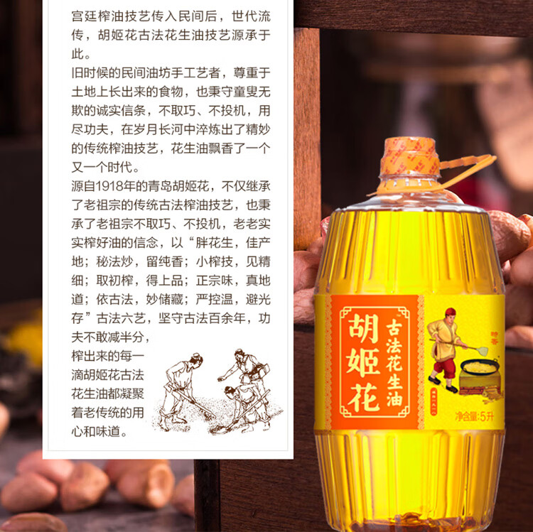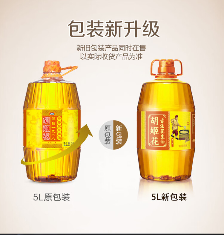 胡姬花 食用油【保真花生油】压榨一级 古法花生油5L(新老包装随机发货)