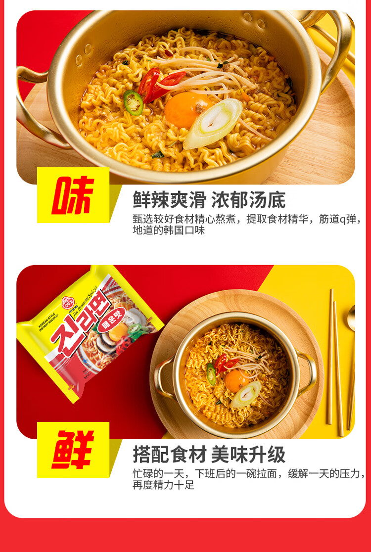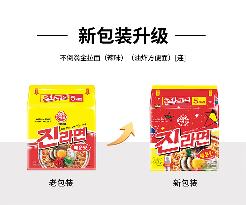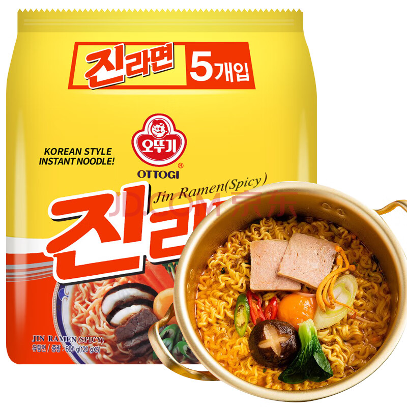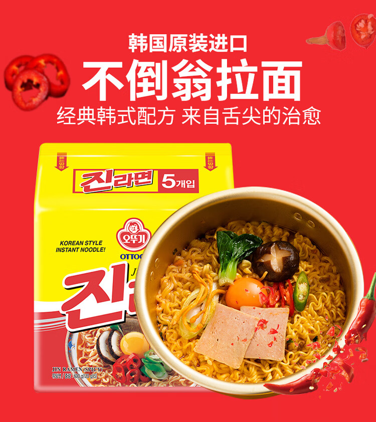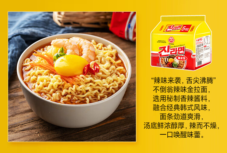 不倒翁韩国进口 辣味金拉面120g*5包 潘帅同款泡面 香辣韩式方便面袋装