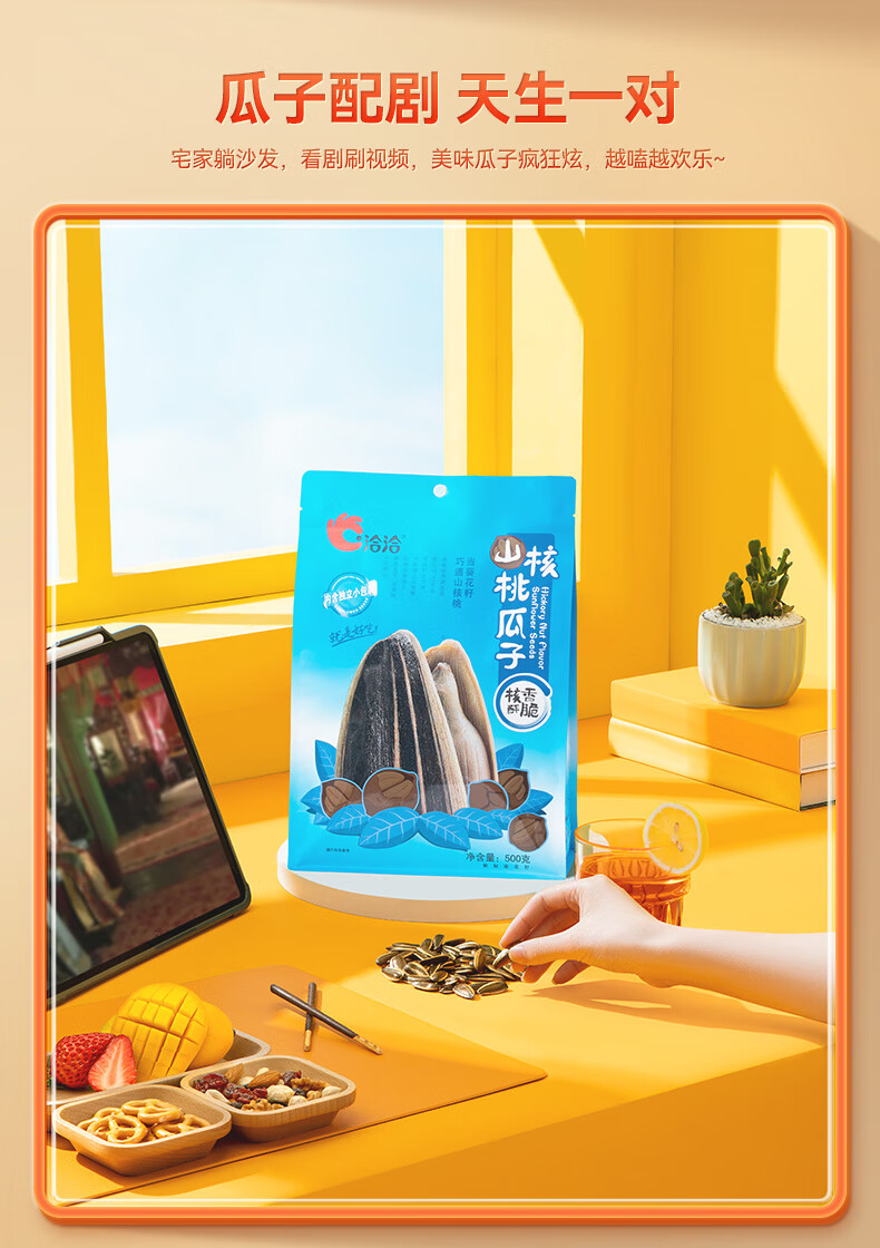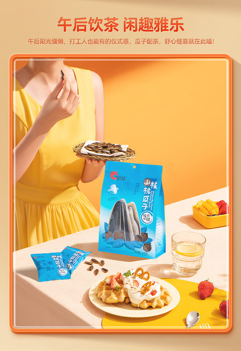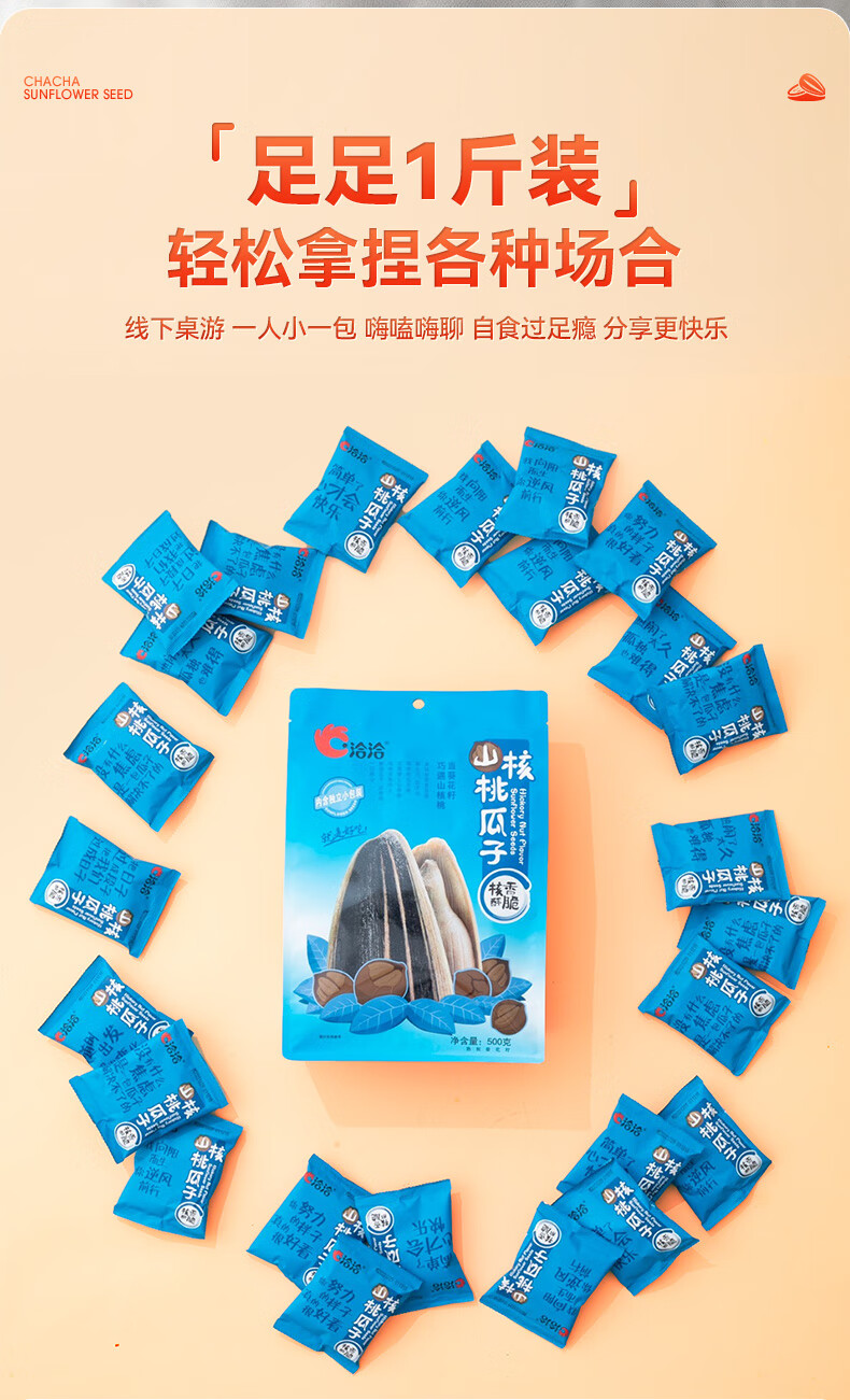 洽洽山核桃瓜子500g葵花籽大颗粒休闲零食小吃独立小包装(20g*25包)