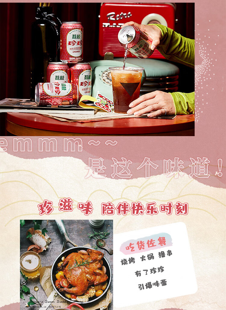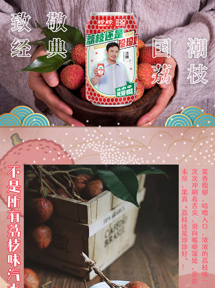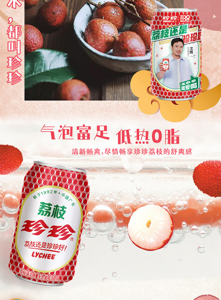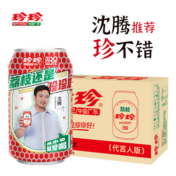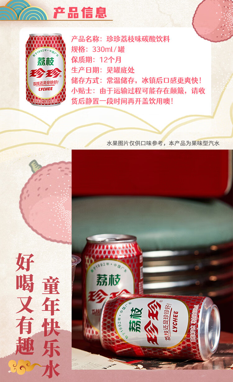 珍珍荔枝味汽水 果味碳酸饮料330ml*24瓶 整箱装(图案随机)热门商品