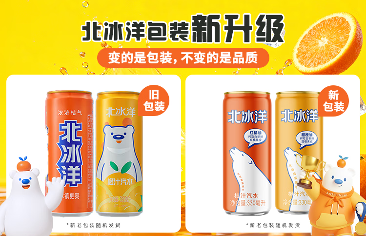 北冰洋 桔汁+橙汁 双拼果汁汽水 碳酸饮料 330ml*24罐/福气满满送礼礼盒