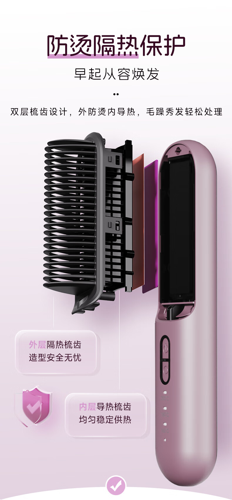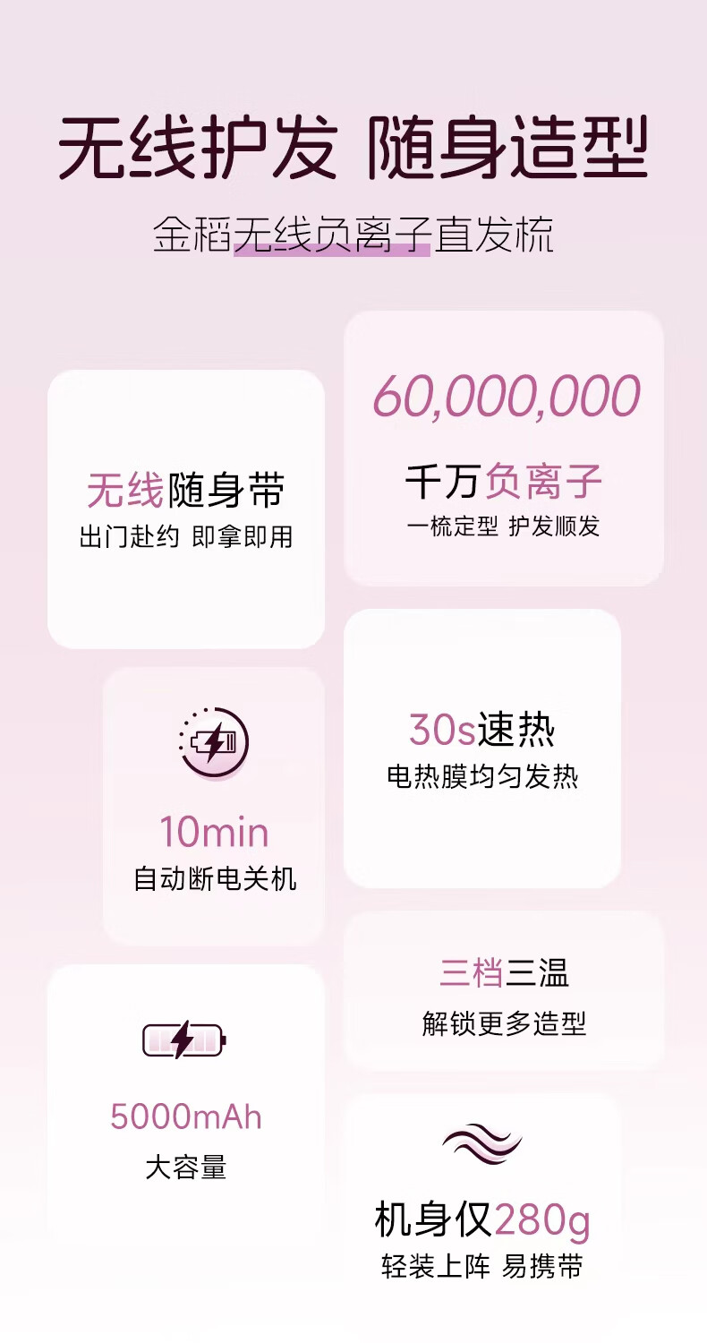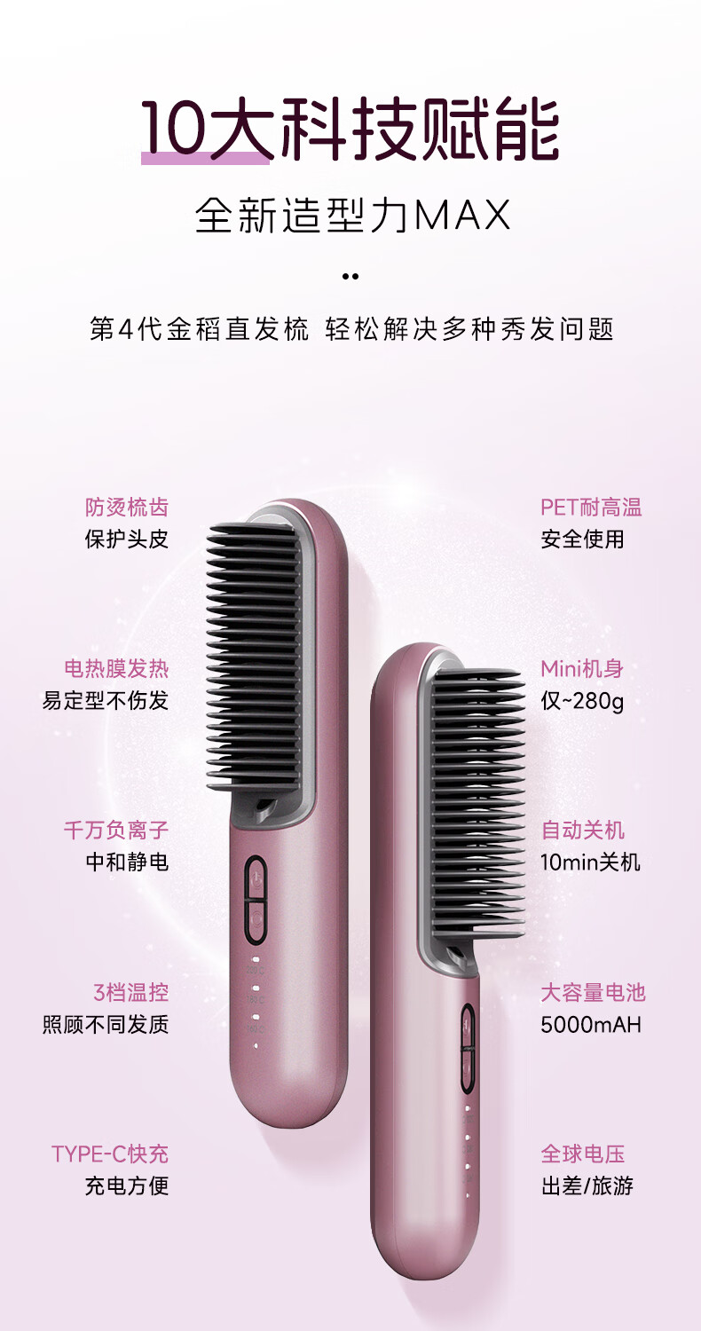 金稻无线直发梳便携六千万负离子改善毛躁夹板短发卷发棒