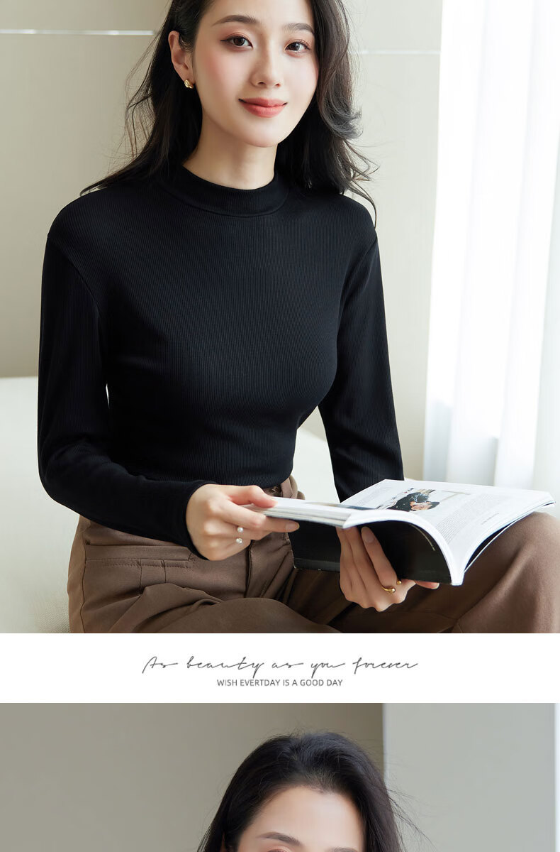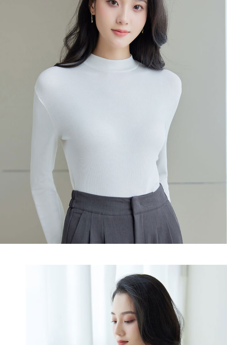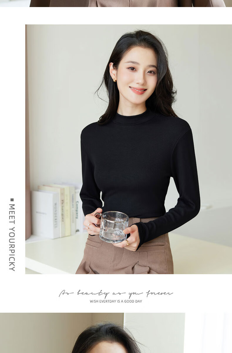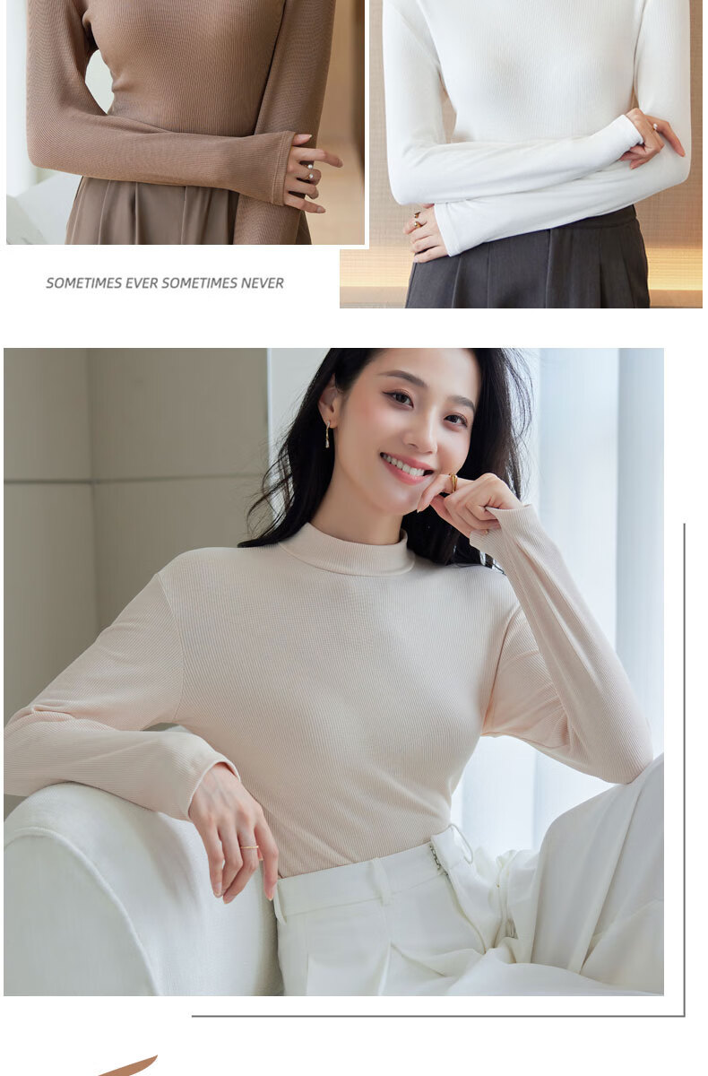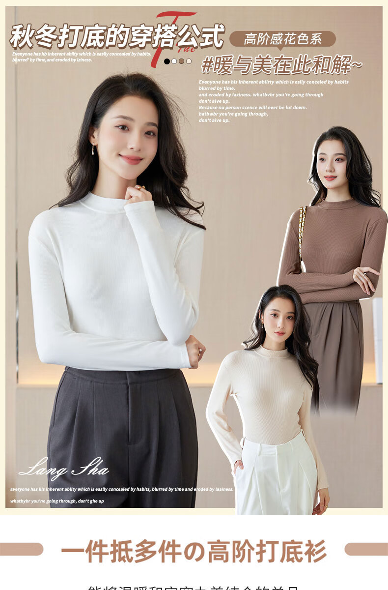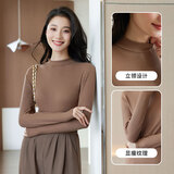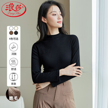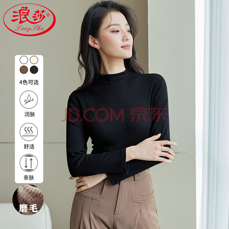 浪莎半高领打底衫女春秋磨毛内搭中领长袖上衣简约弹性修