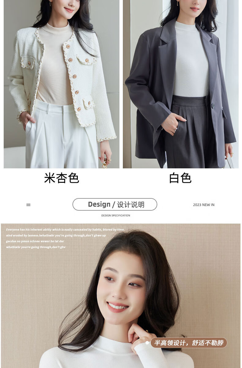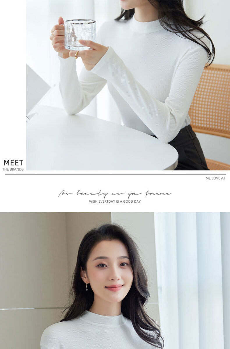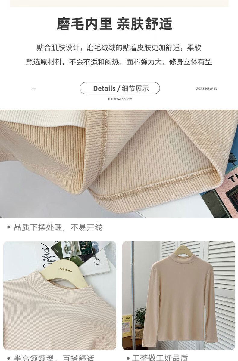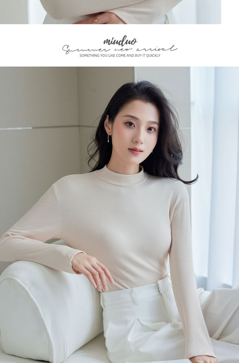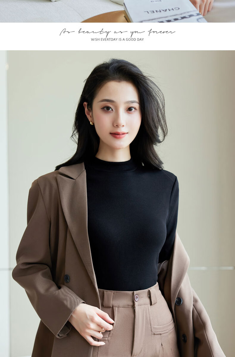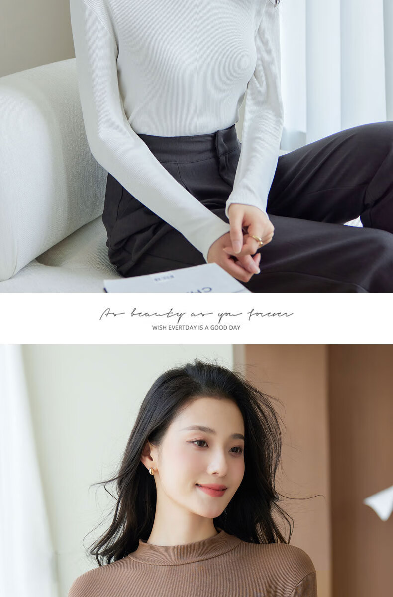 浪莎半高领打底衫女春秋磨毛内搭中领长袖上衣简约弹性修