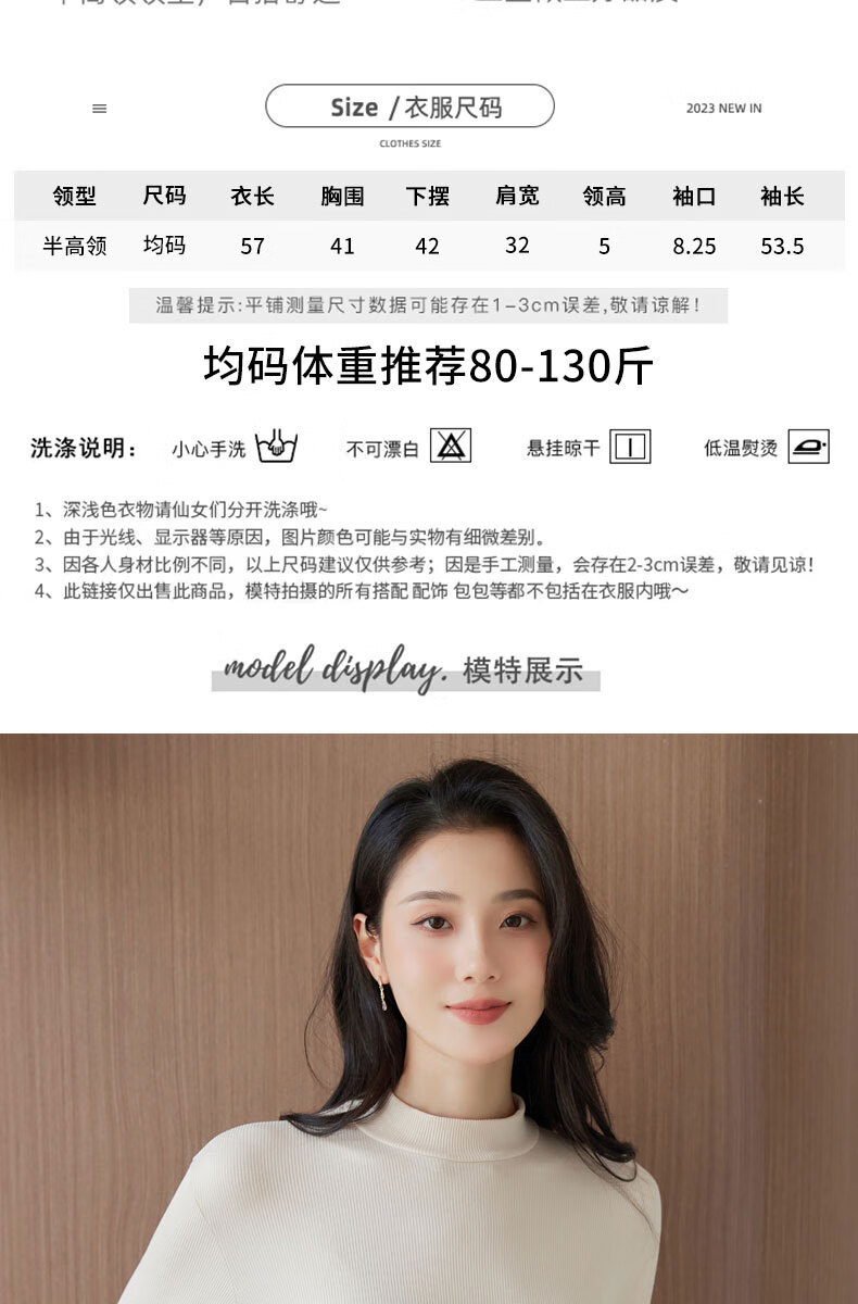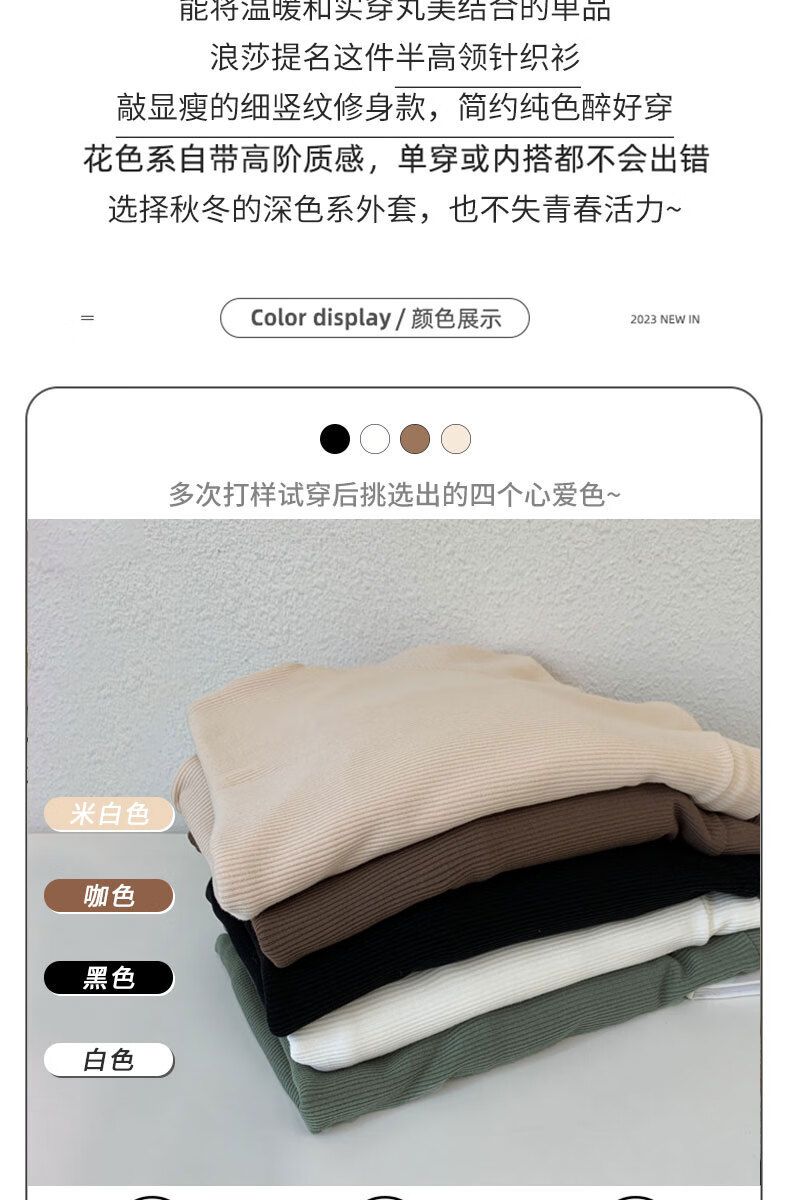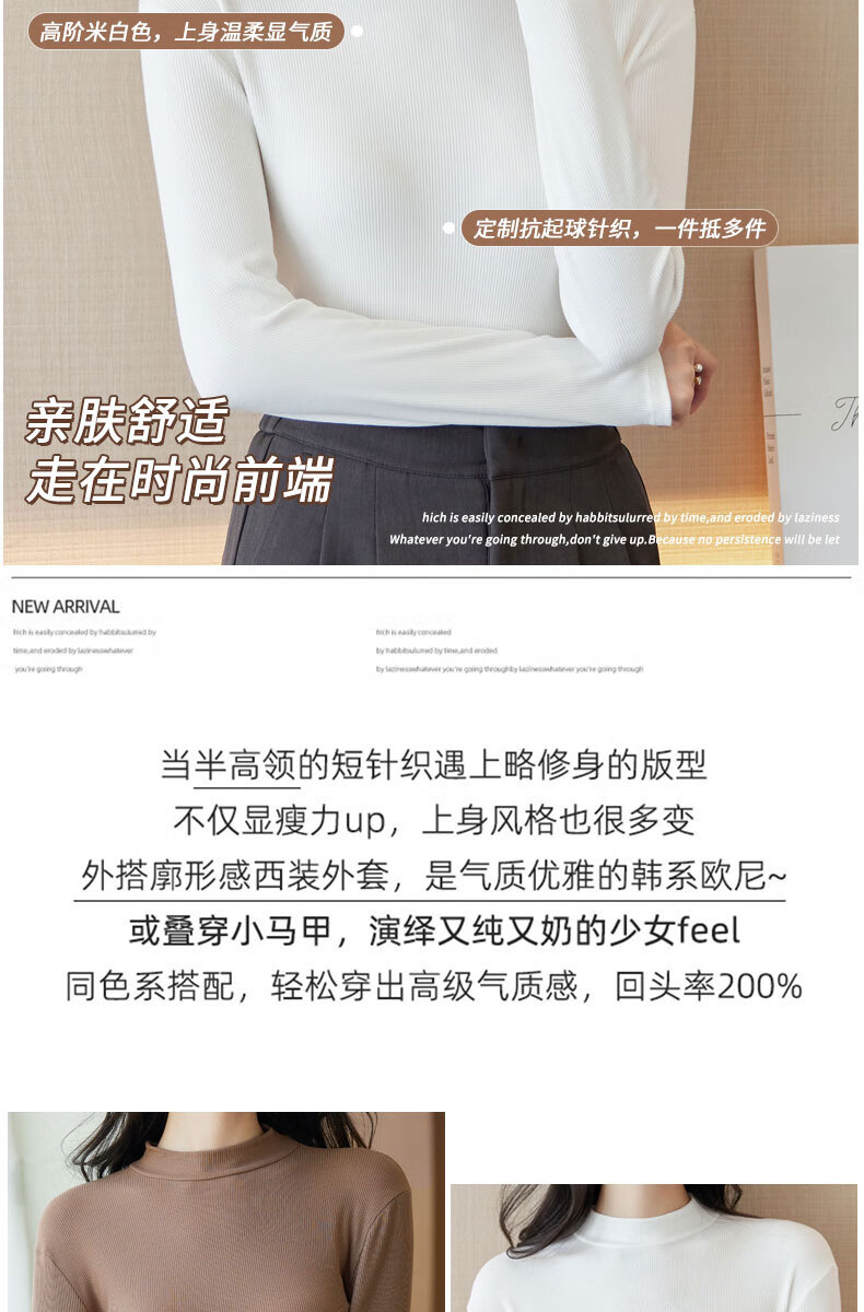 浪莎半高领打底衫女春秋磨毛内搭中领长袖上衣简约弹性修身针织毛衣