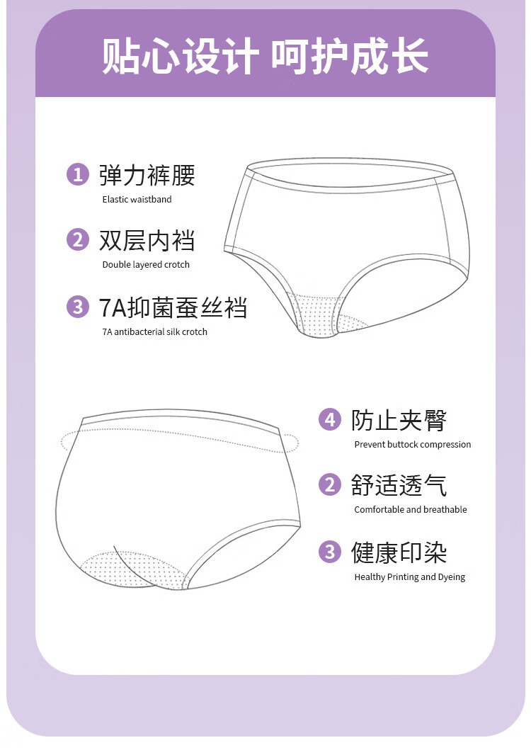 笛莎(DEESHA)【7A抑菌】女童内裤儿童三角短裤夏季薄款青少年女孩裤头