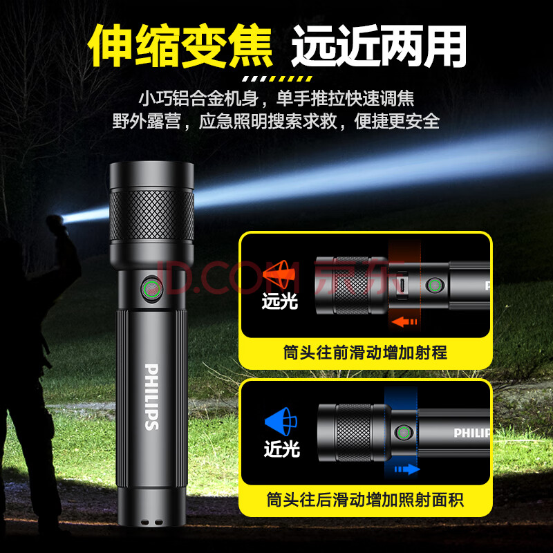 飞利浦(PHILIPS)手电筒强光手电超亮超长续穿天家用小型军户外照明应急灯SFL2247
