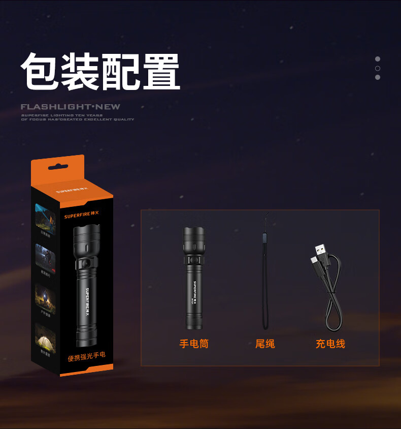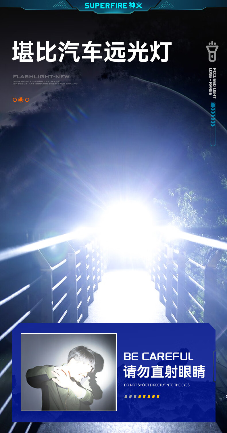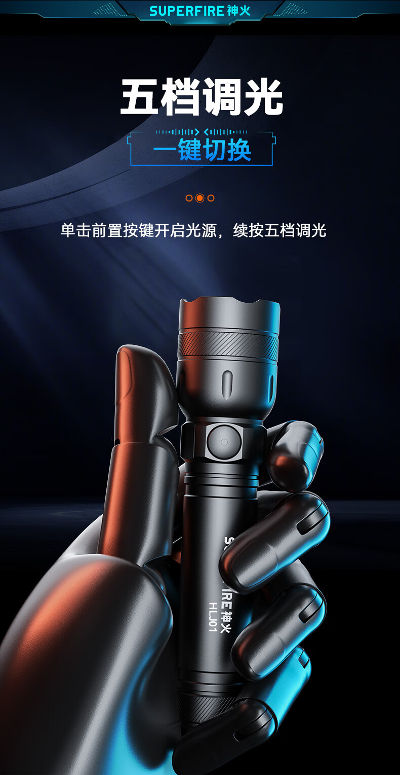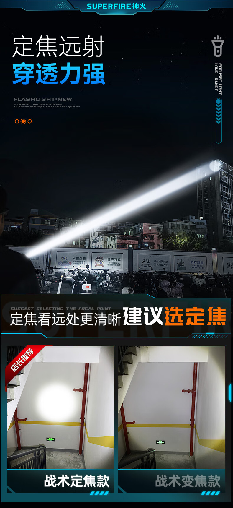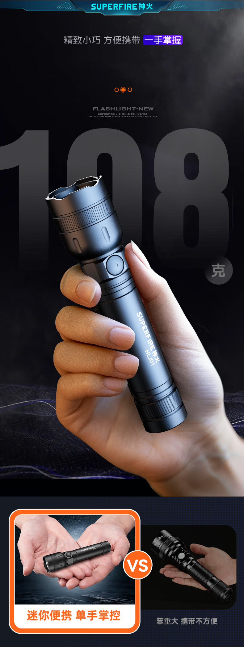 神火(SupFire)HLJ01手电筒强光充电超亮家用小型长续航远射便携骑行照明应急灯