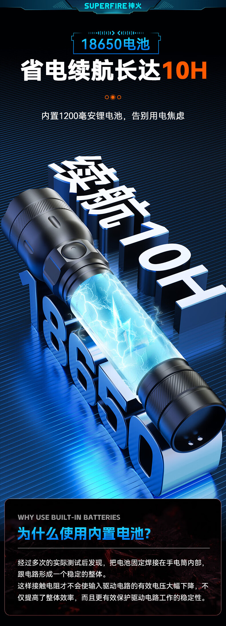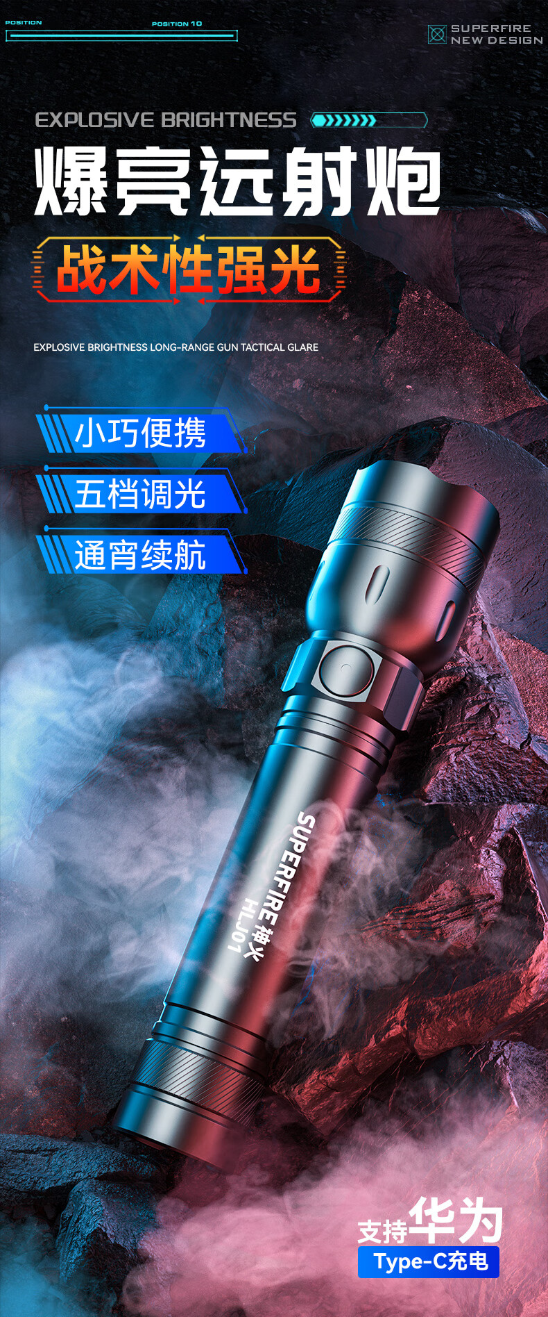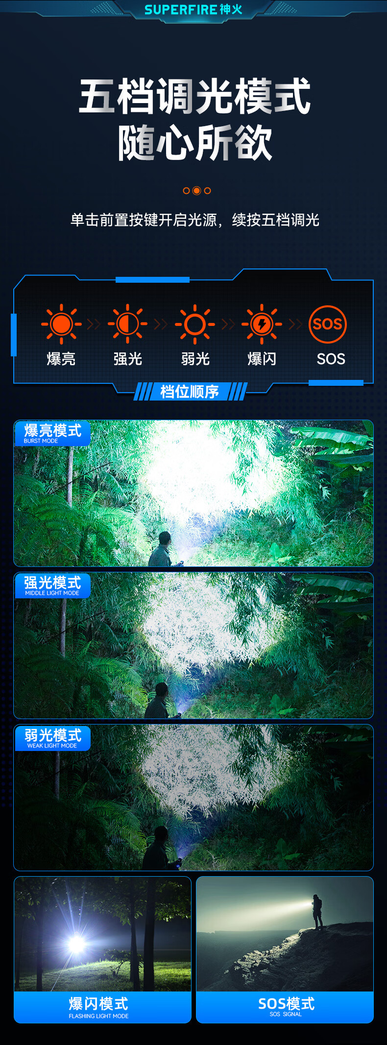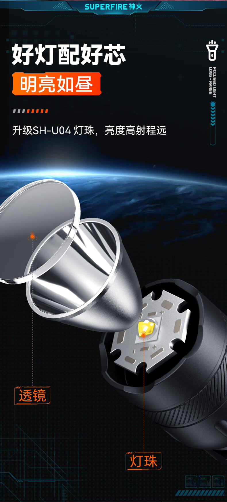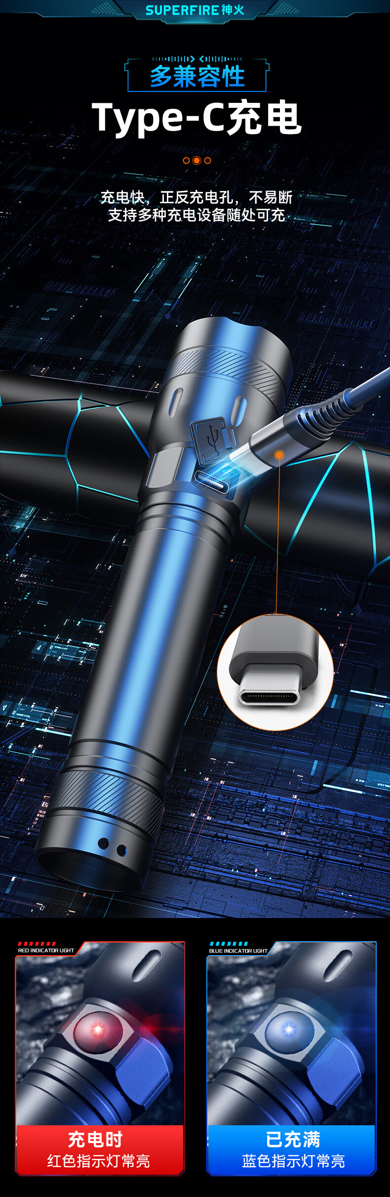 神火(SupFire)HLJ01手电筒强光充电超亮家用小型长续航远射便携骑行照明应急灯