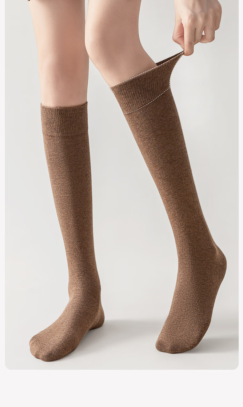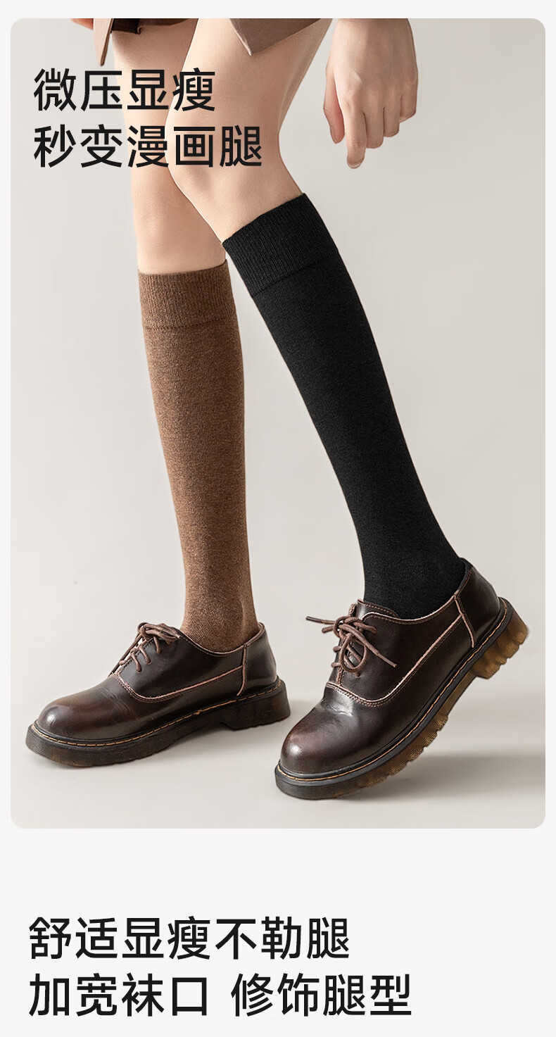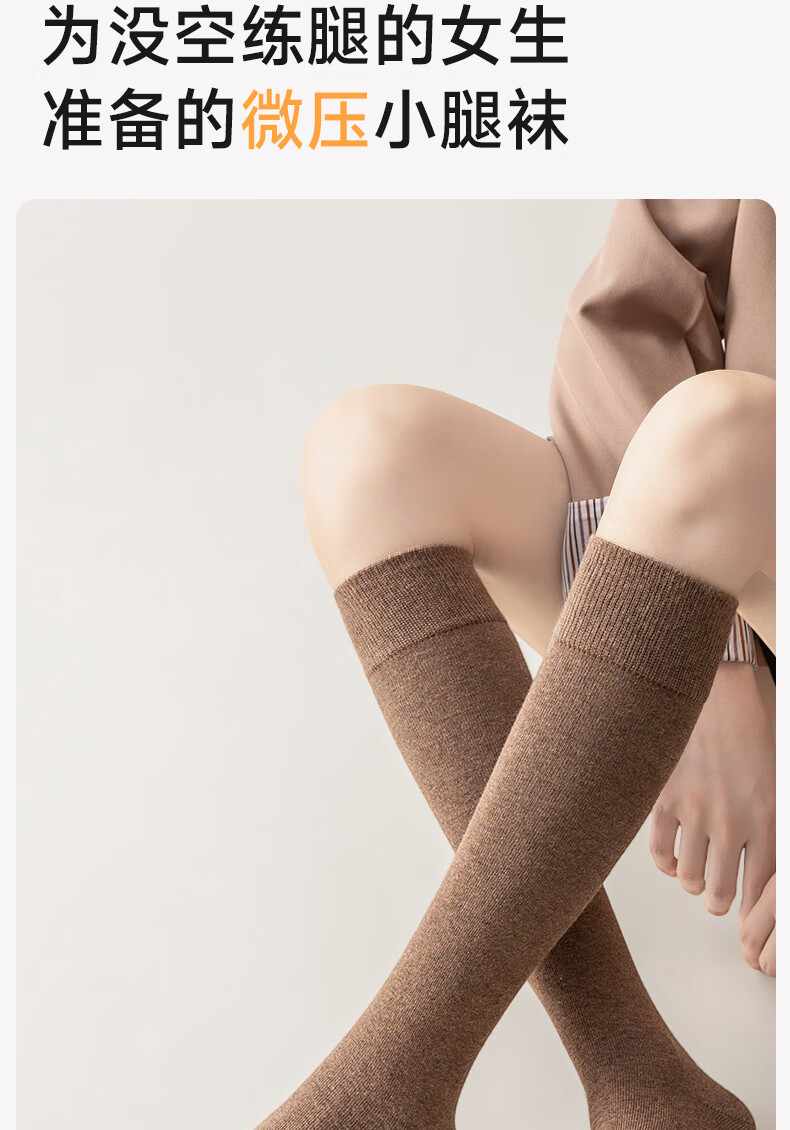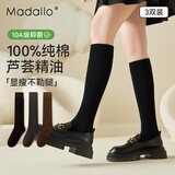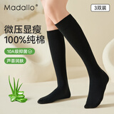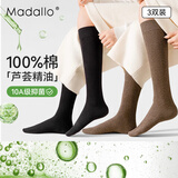 莫代尔3双装压力小腿袜子女100%纯棉秋冬芦荟润肤防滑不掉中长筒保暖袜
