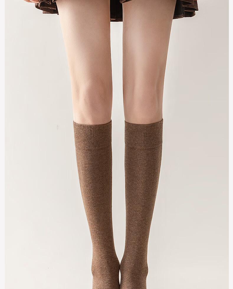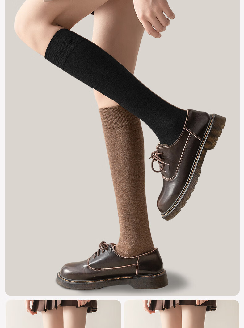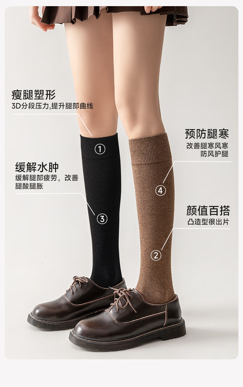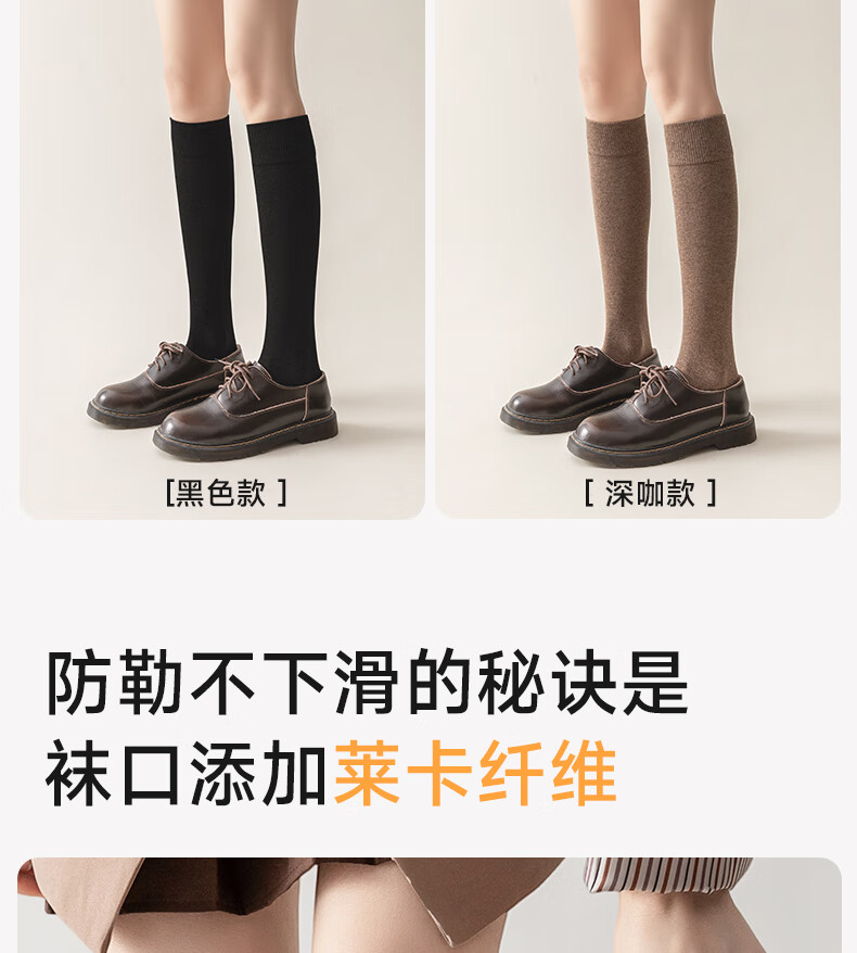 莫代尔3双装压力小腿袜子女100%纯棉秋冬芦荟润肤防滑不掉中长筒保暖袜