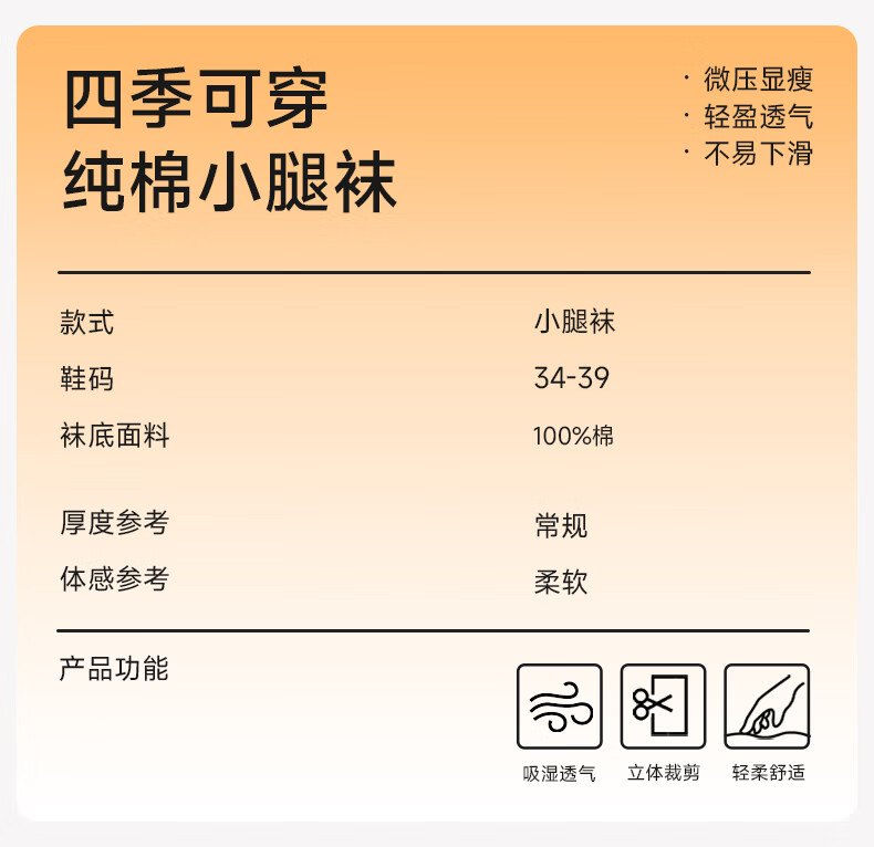 京造4双袜子女士短筒袜春夏季女袜抑菌防臭吸汗透气休闲