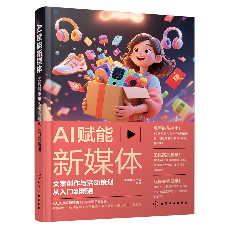 本书深入讲解了AI如何赋能新媒体环境下的文案创作与活动策划,以提升效率和效果。随书赠送:160页PPT教学课件+127集教学视频+78组AI提示词+78个效果素材文件+10章电子教案。书中内容从以下两条线展开介绍。