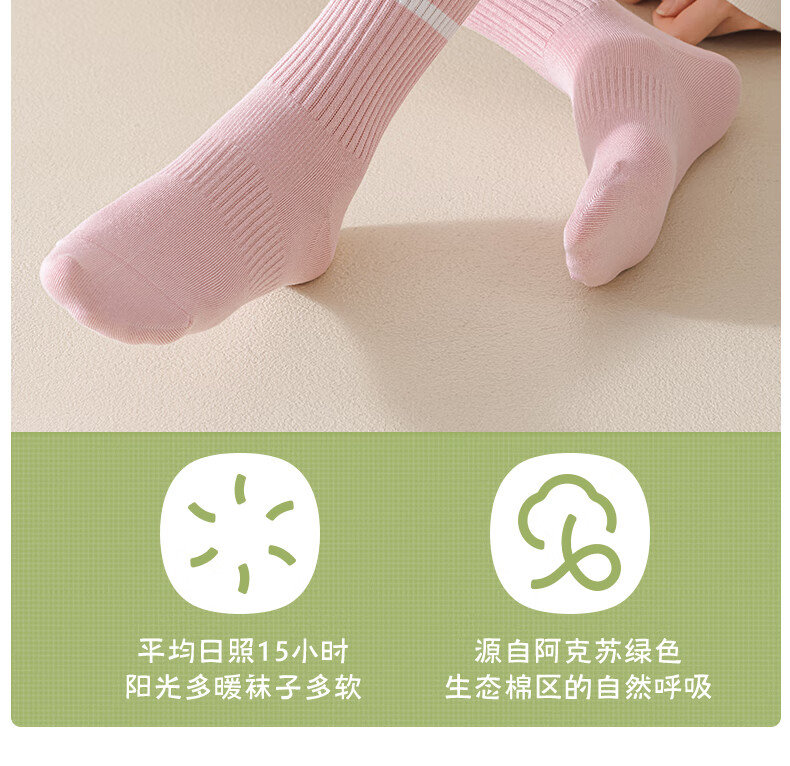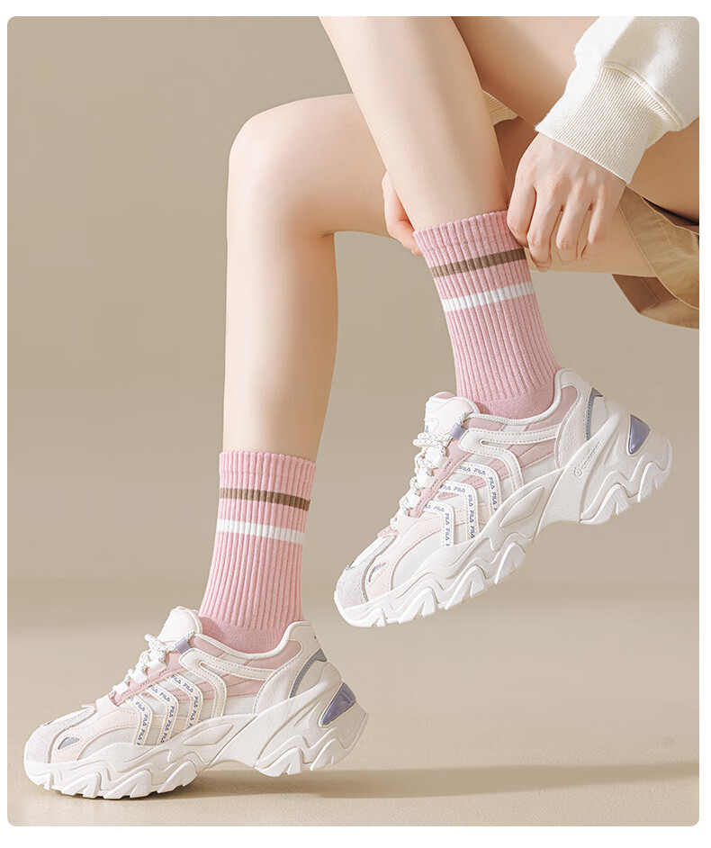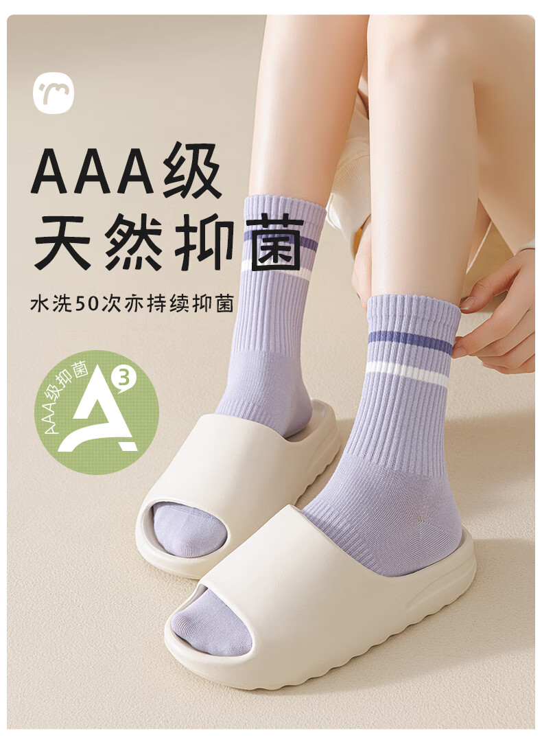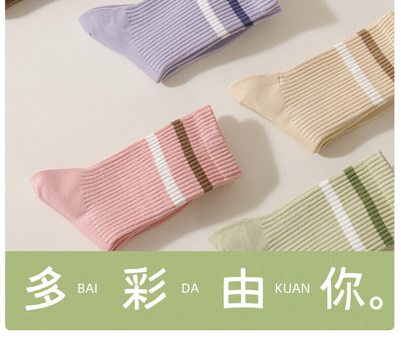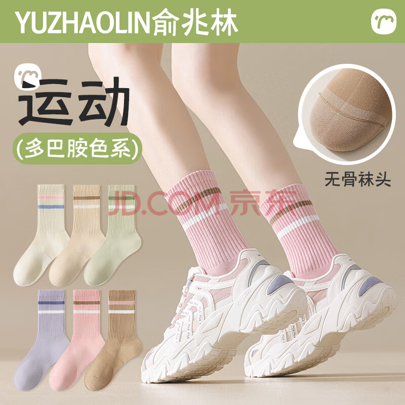 俞兆林5双袜子女士中筒袜春夏季棉质防臭长筒无骨袜多巴胺跑步运动袜