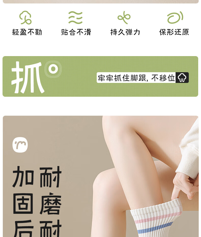 京造4双袜子女士短筒袜春夏季女袜抑菌防臭吸汗透气休闲