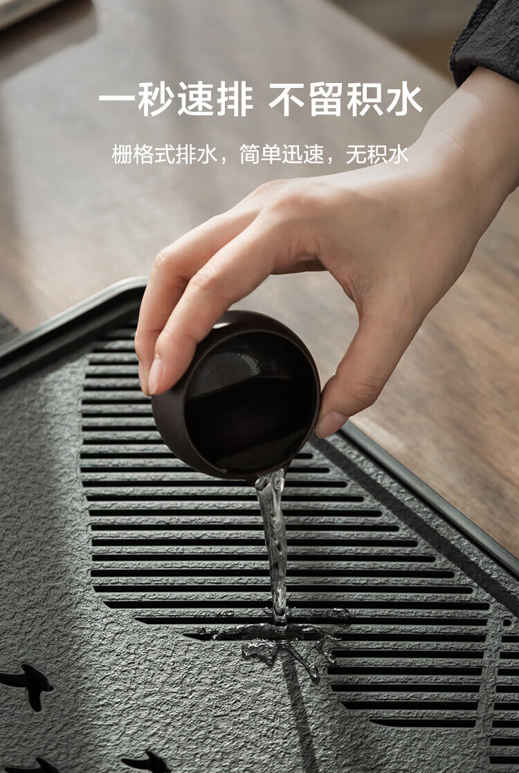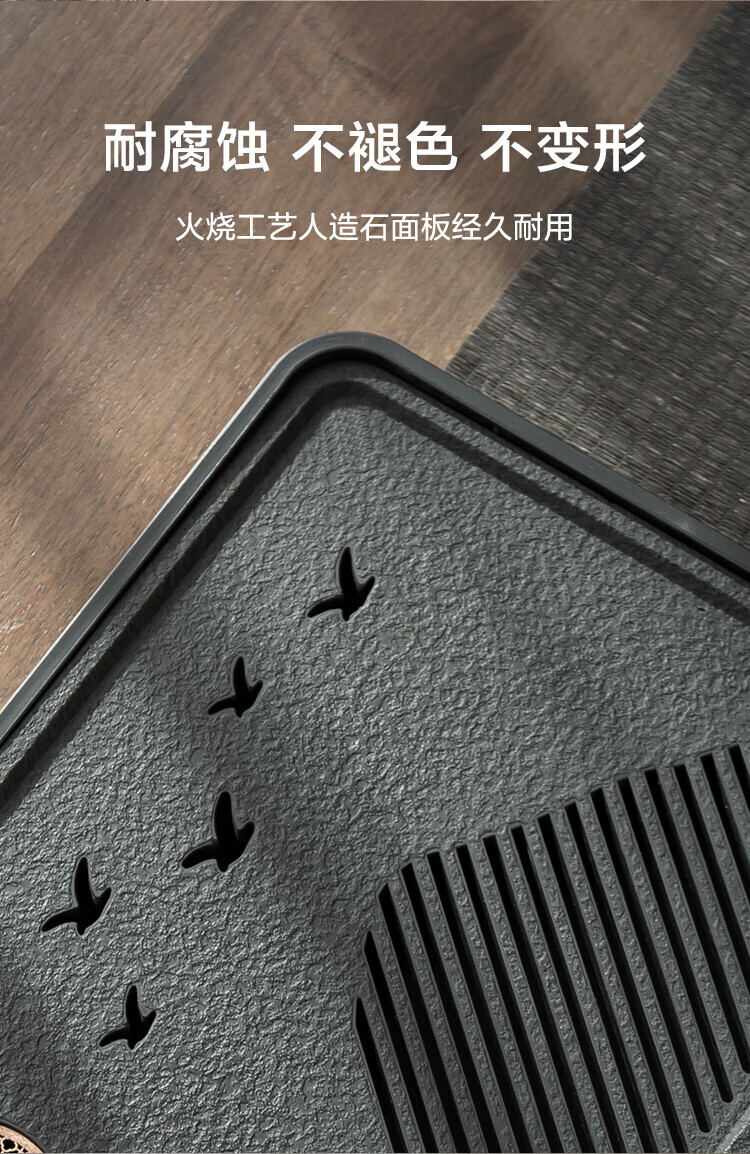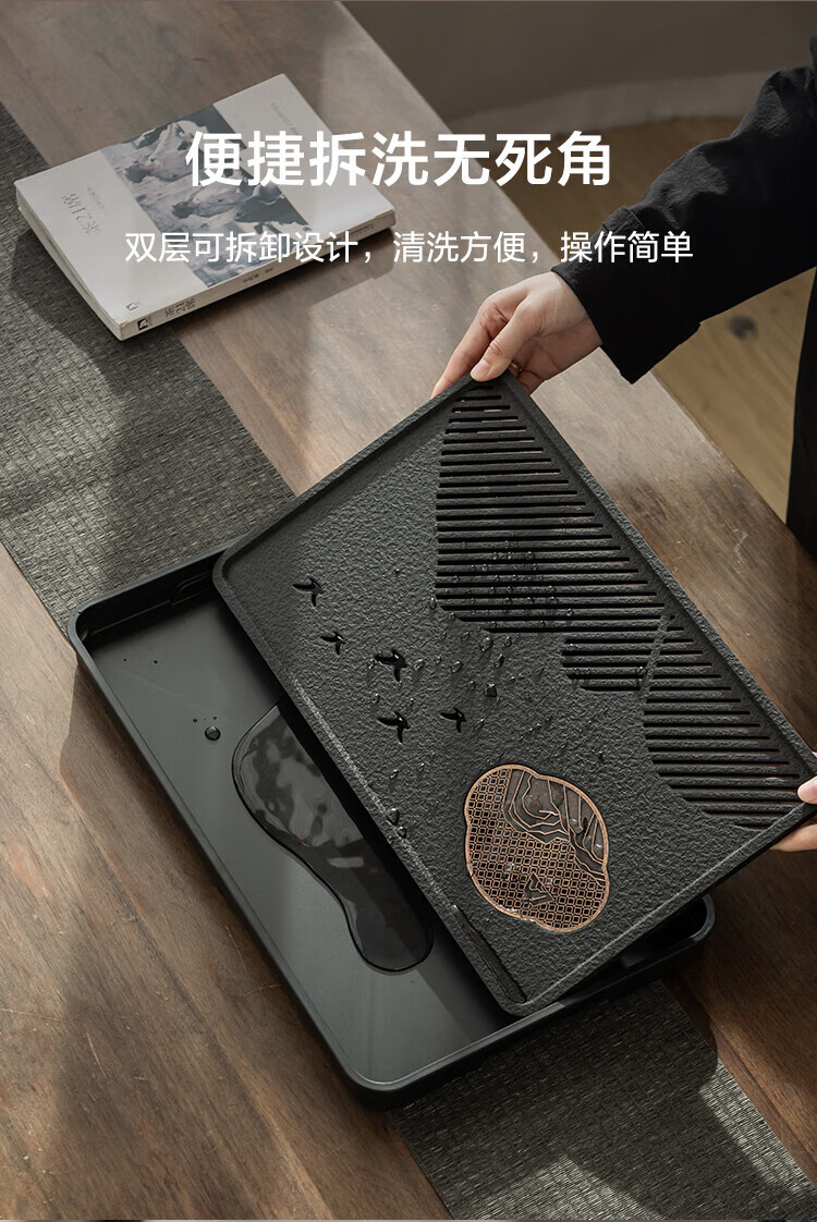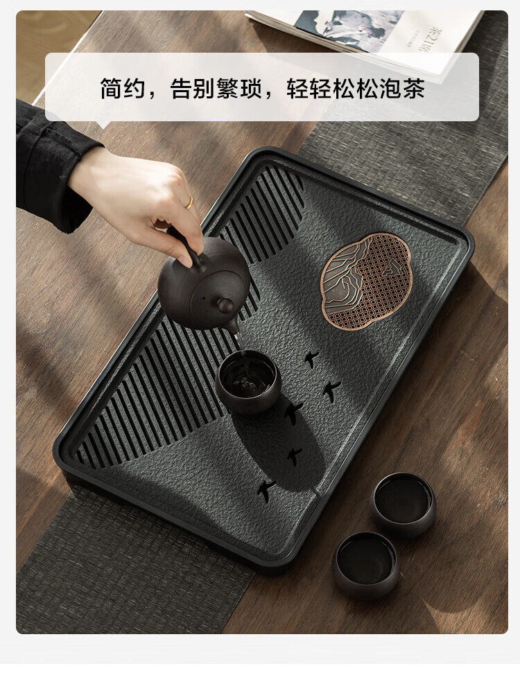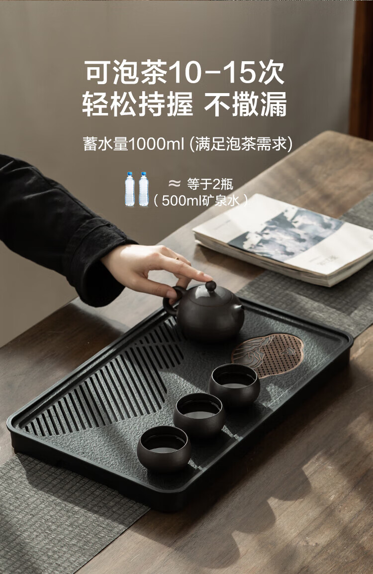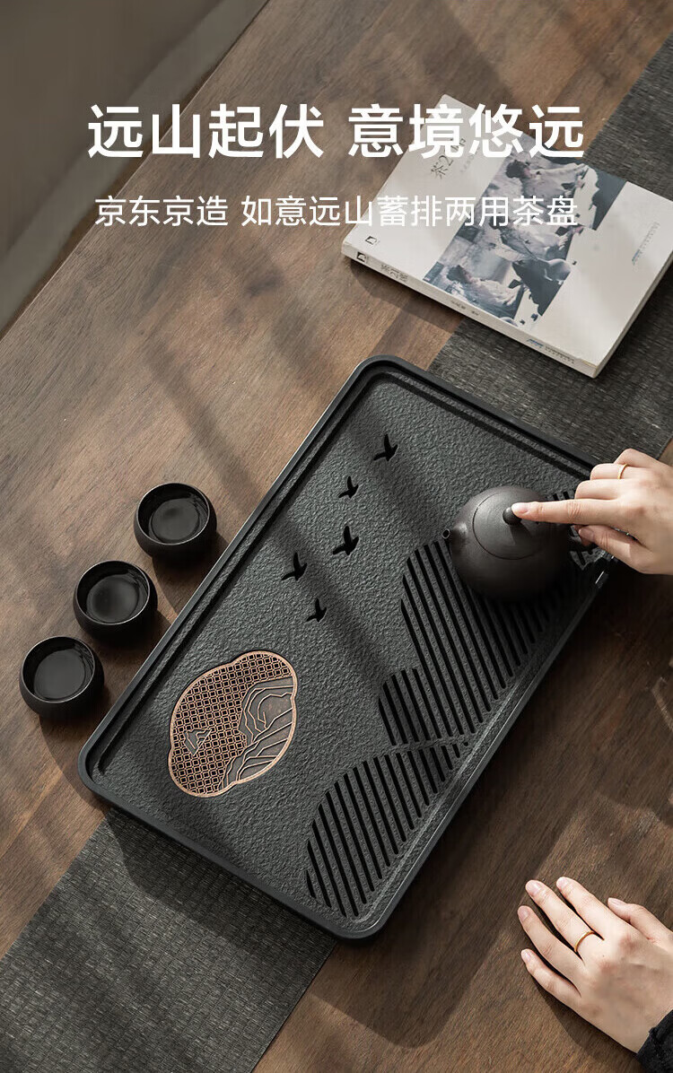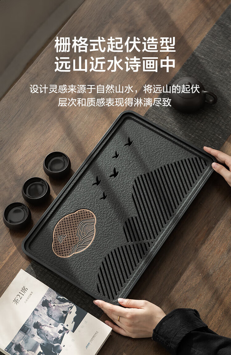 京造 茶盘茶托 茶台茶盘带排水储水仿乌金石家用客厅如意远山茶盘中号