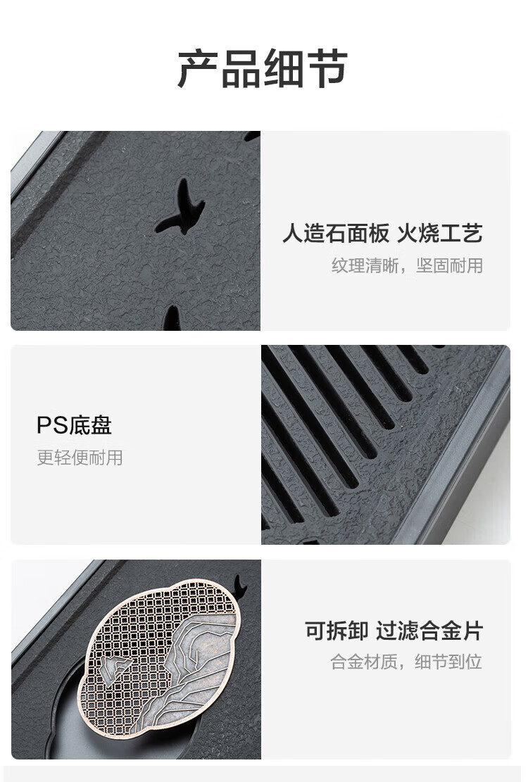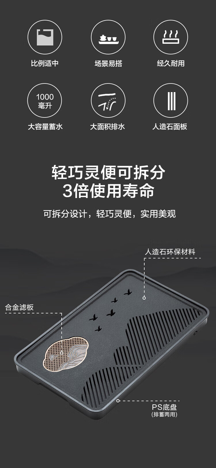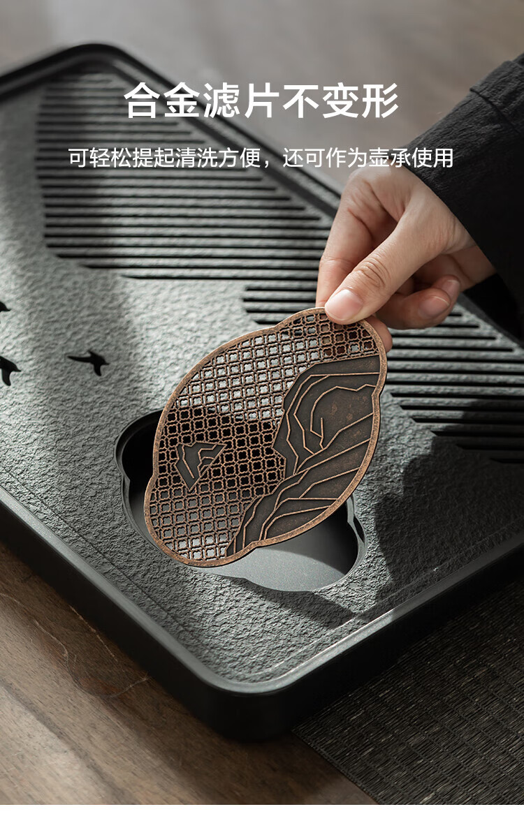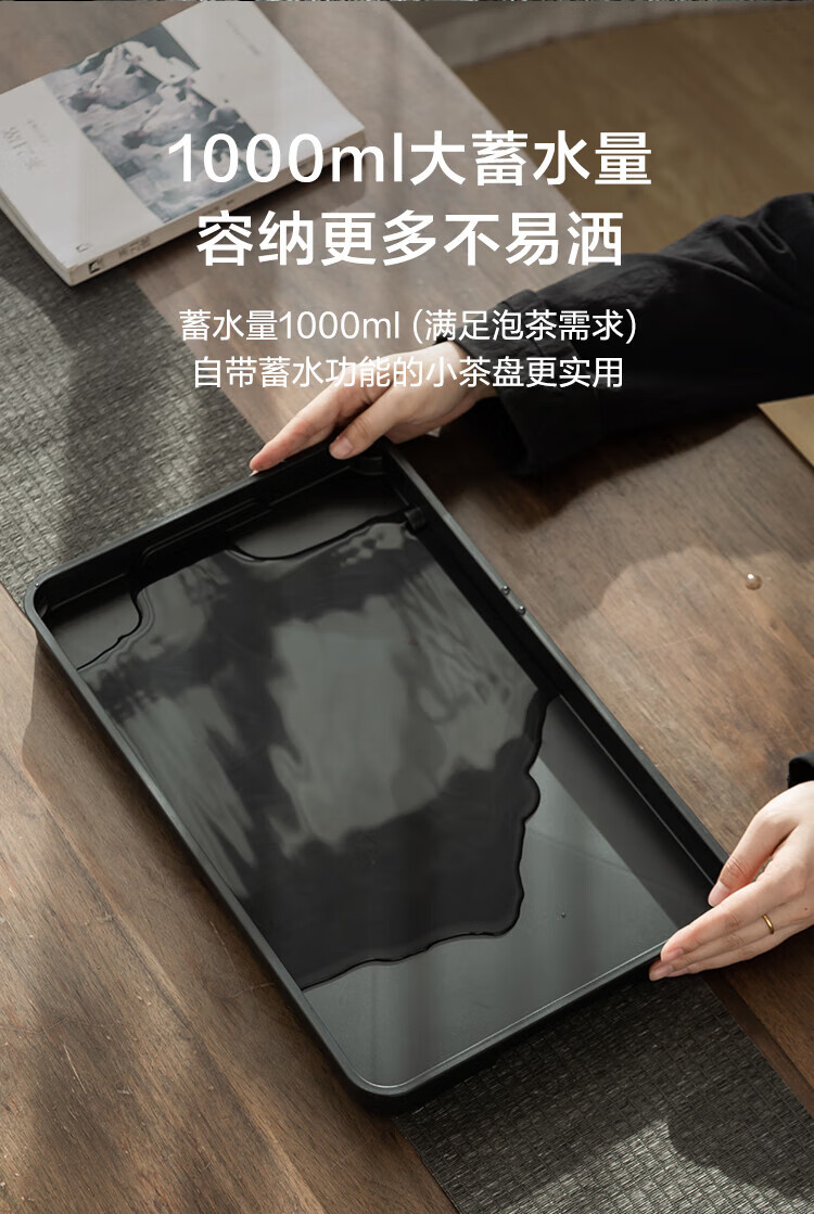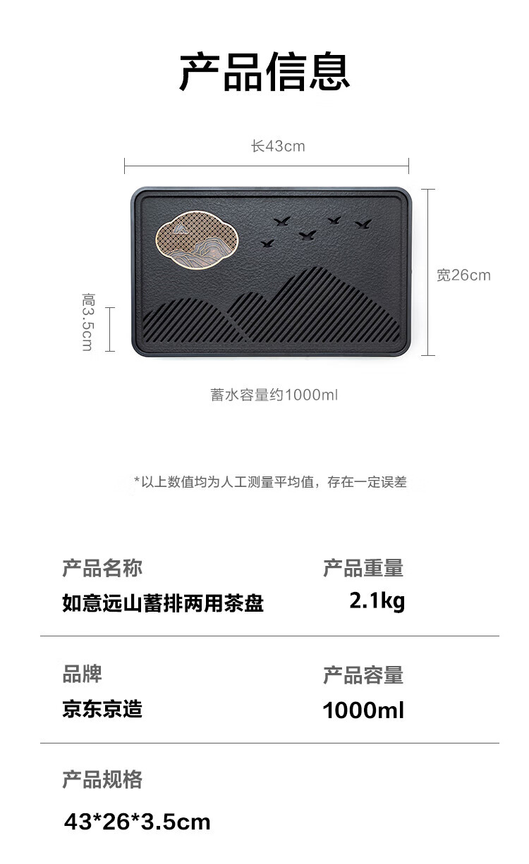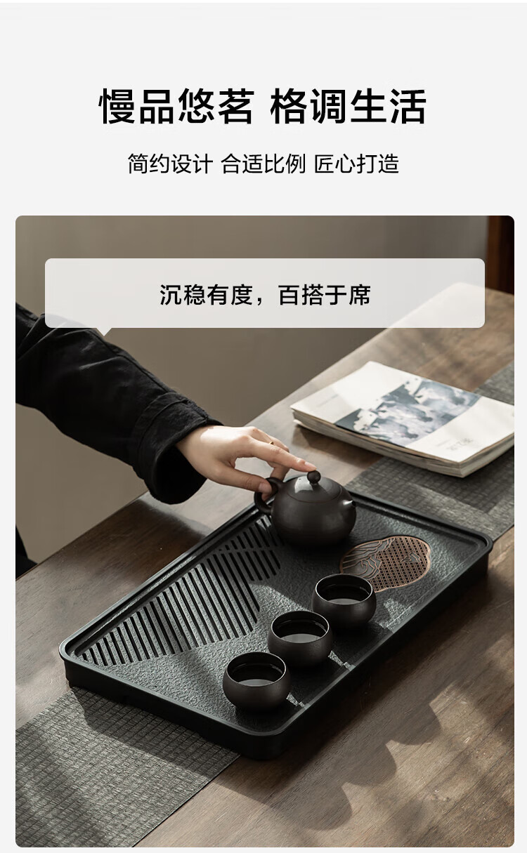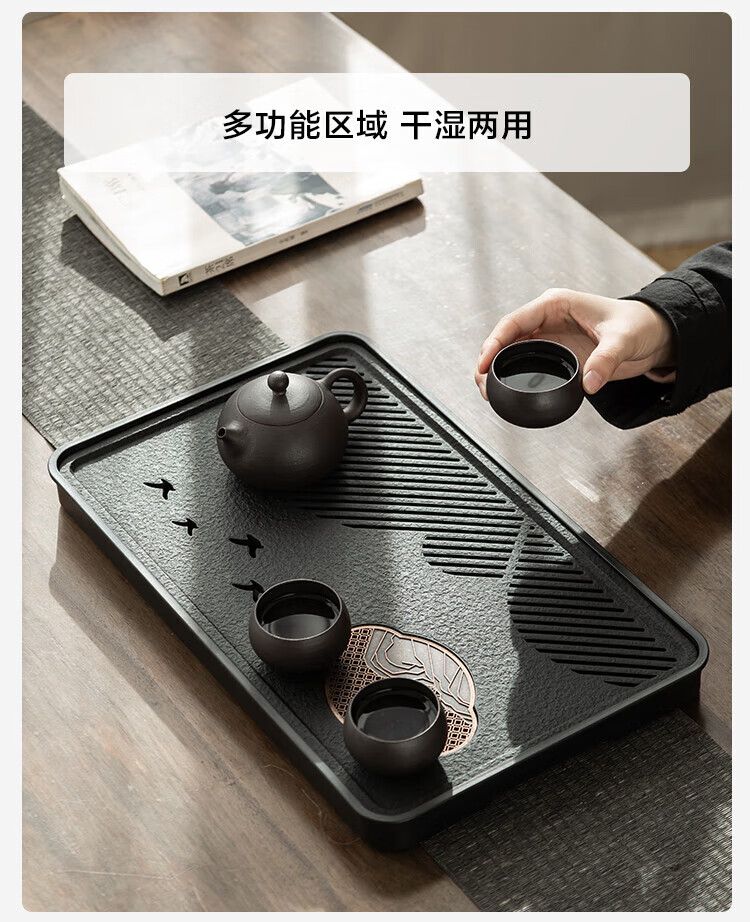 京造 茶盘茶托 茶台茶盘带排水储水仿乌金石家用客厅如意远山茶盘中号