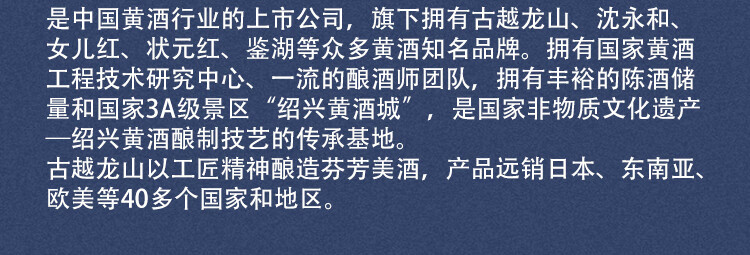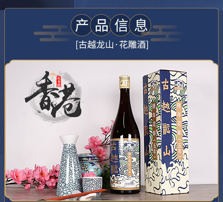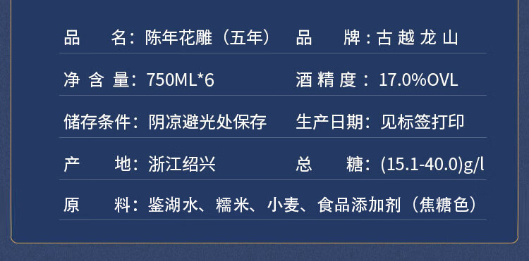 古越龙山 港版花雕五年 半干型 绍兴黄酒 750ml*6瓶 整箱装 双十一
