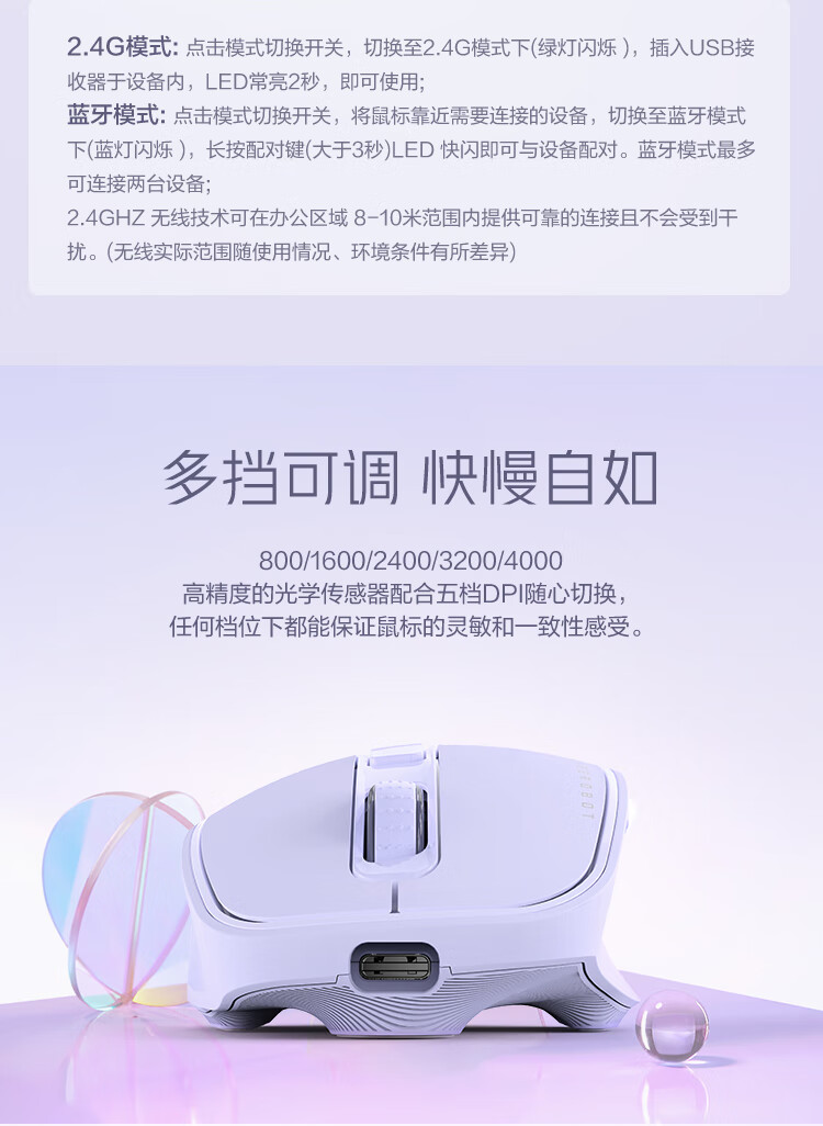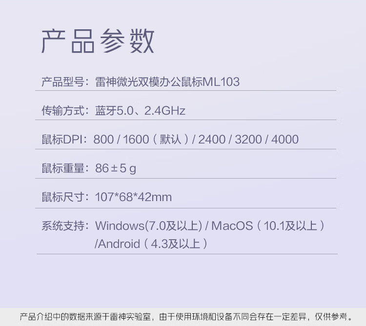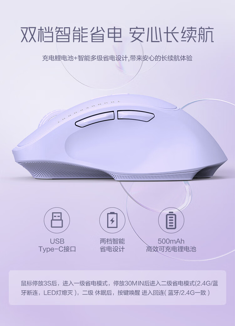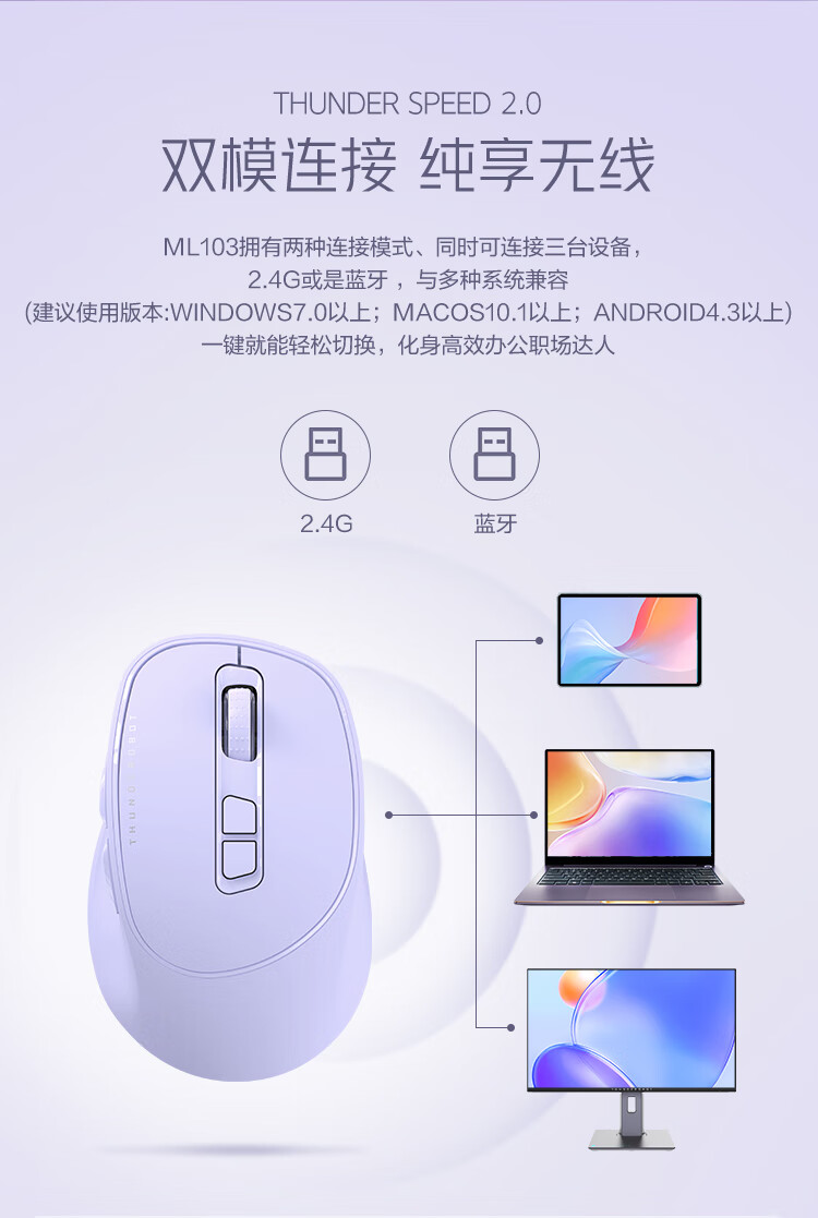 雷神(ThundeRobot)微光无线双模鼠标ML103薰衣紫 蓝牙2