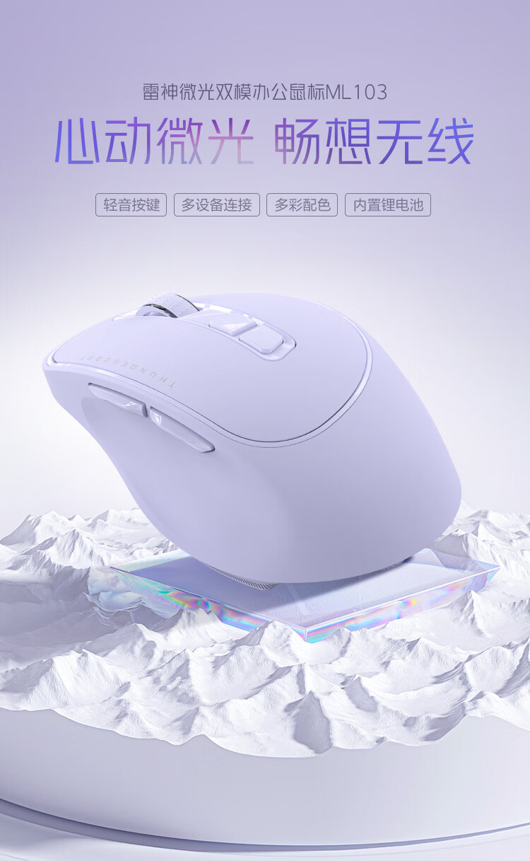 雷神(ThundeRobot)微光无线双模鼠标ML103薰衣紫 蓝牙2.4G鼠标 办公家用轻音鼠标笔记本电脑鼠标 长续航可充电