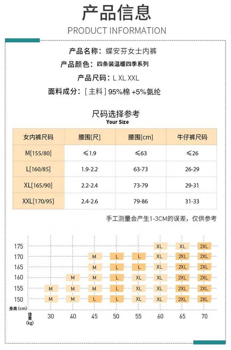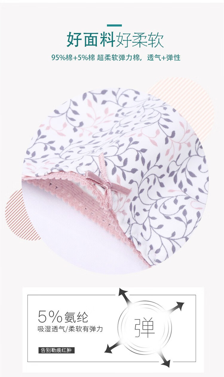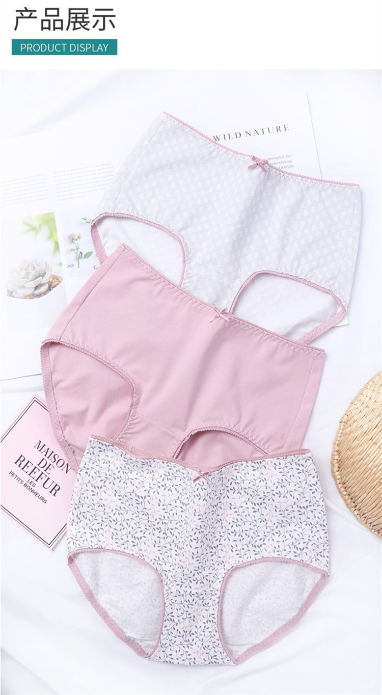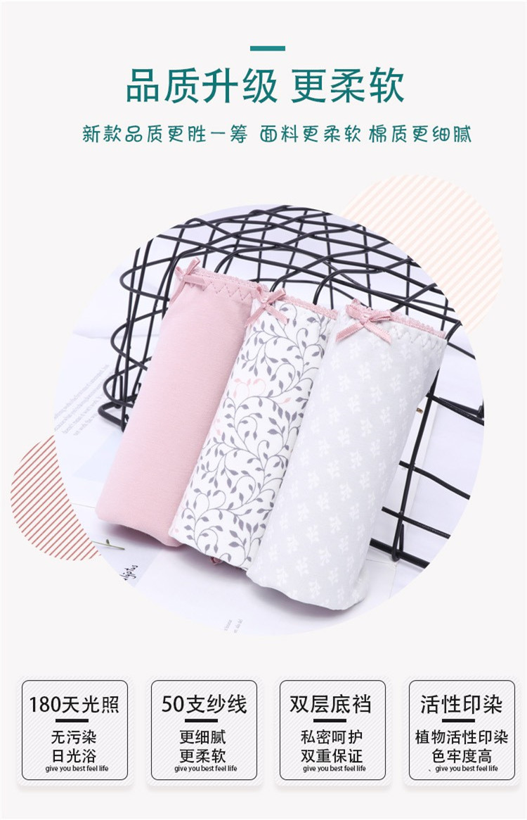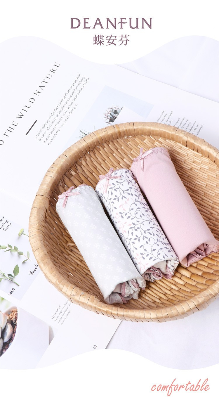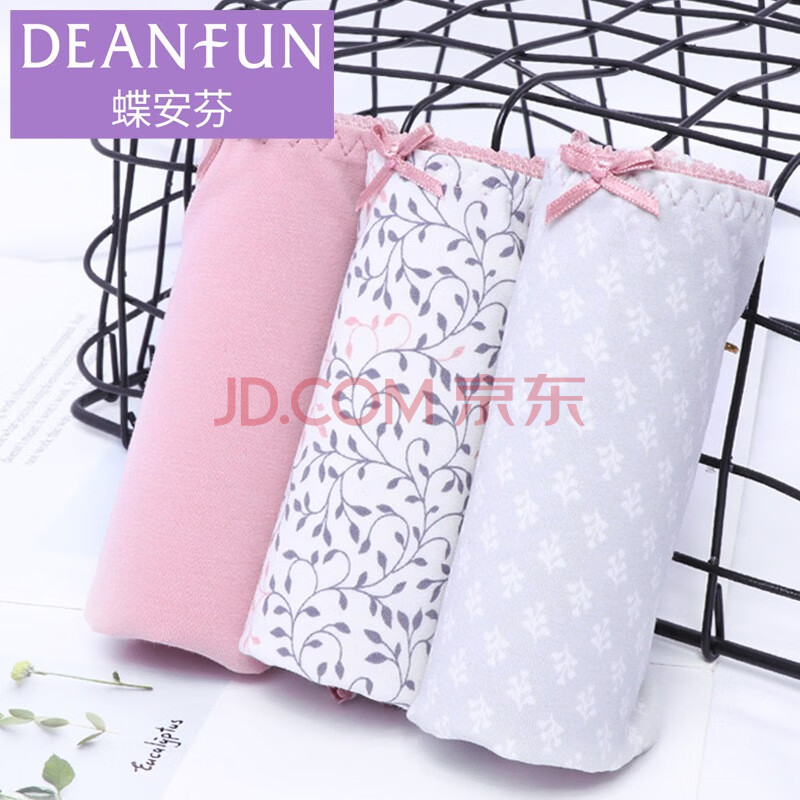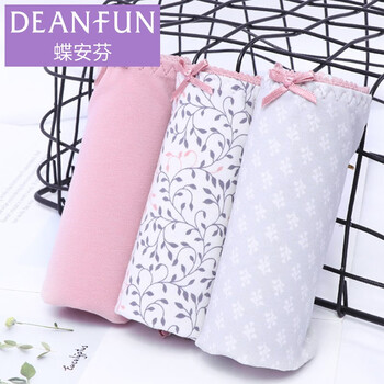 蝶安芬(Deanfun)棉质女式内裤女印花田园风中腰型女士内裤3条礼盒装 XL