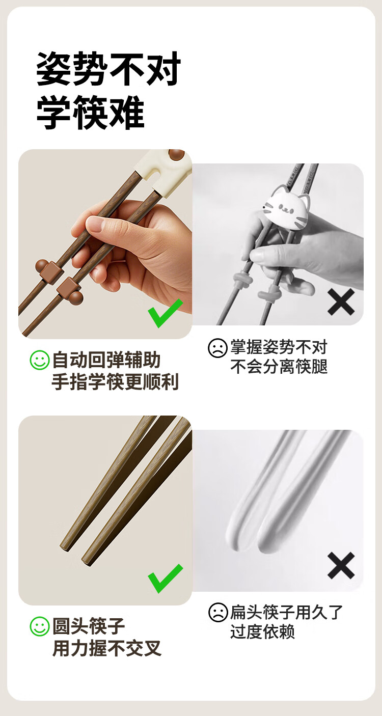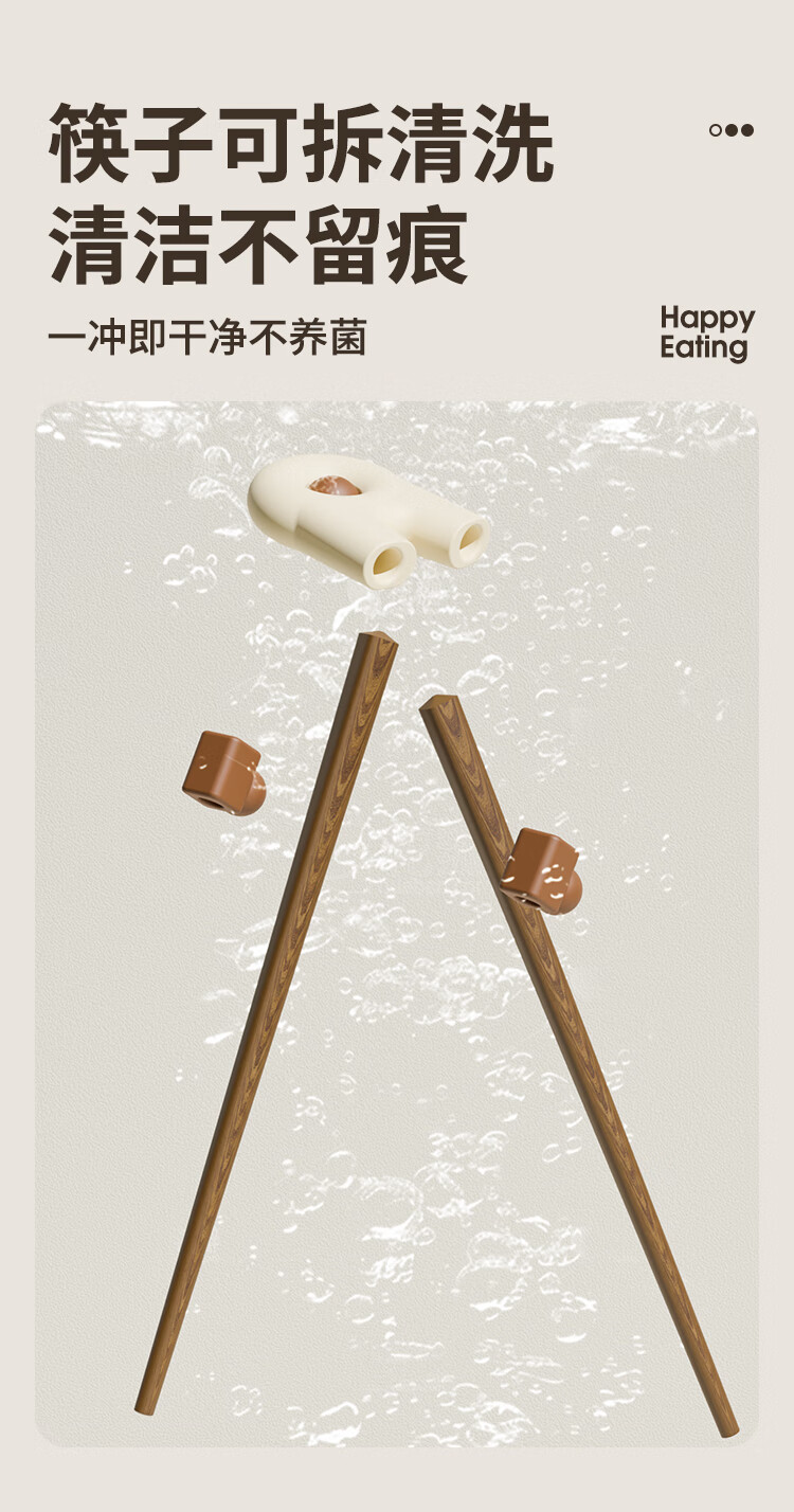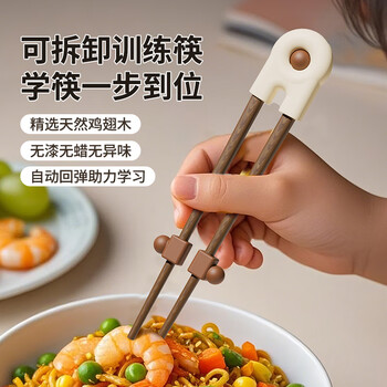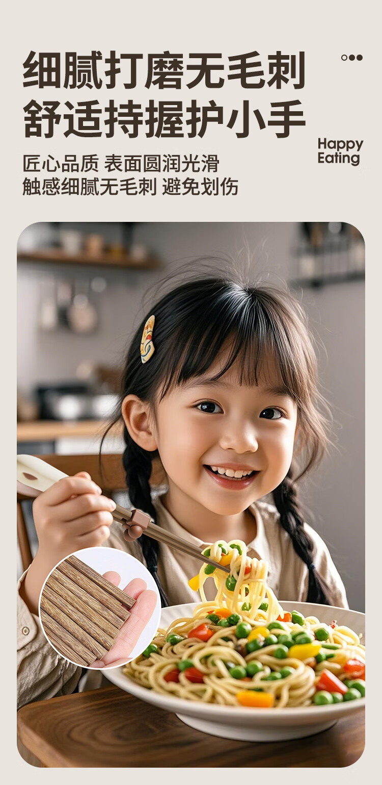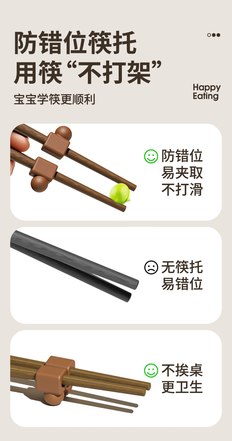 COOKSS儿童筷子训练筷3岁6岁宝宝家用木质辅助器硅胶鸡翅木学习筷收纳盒