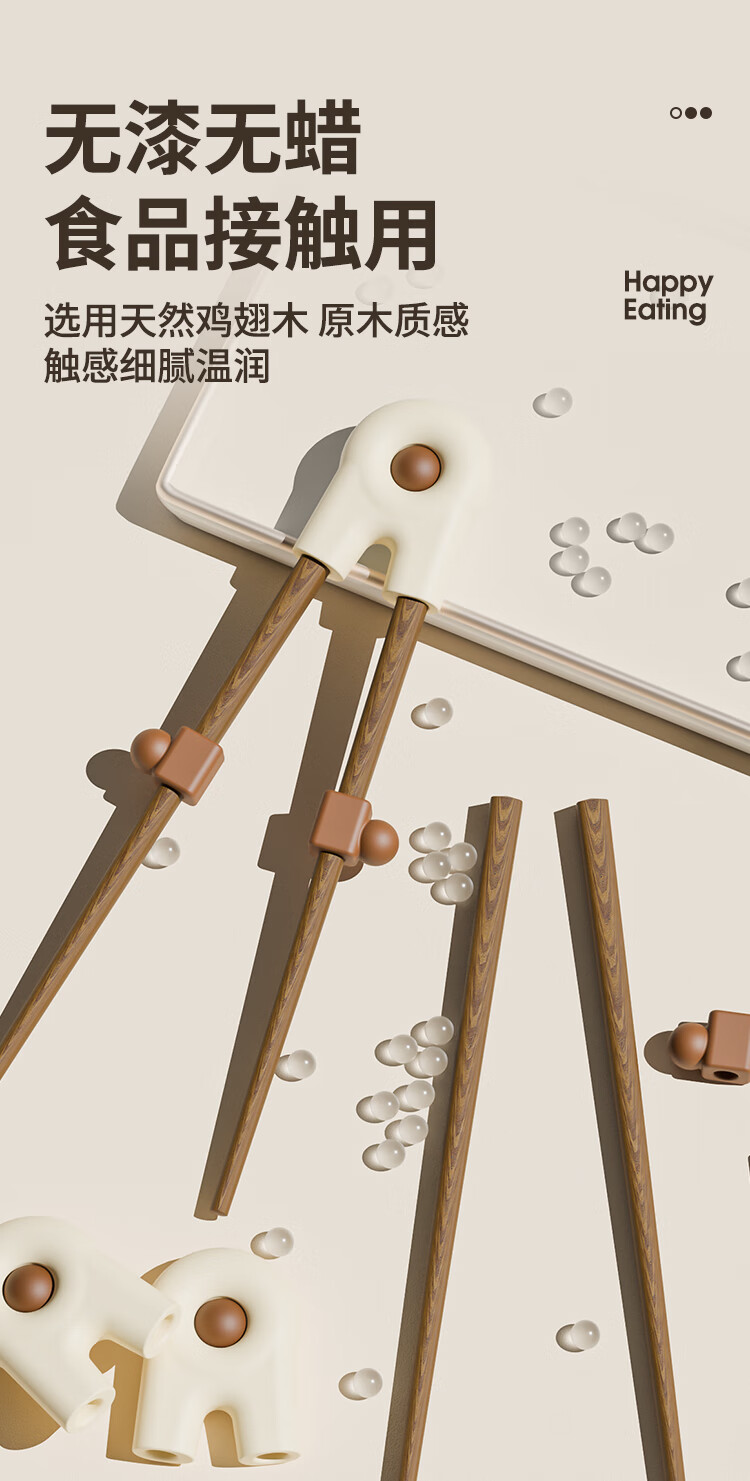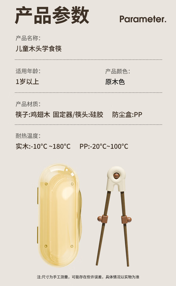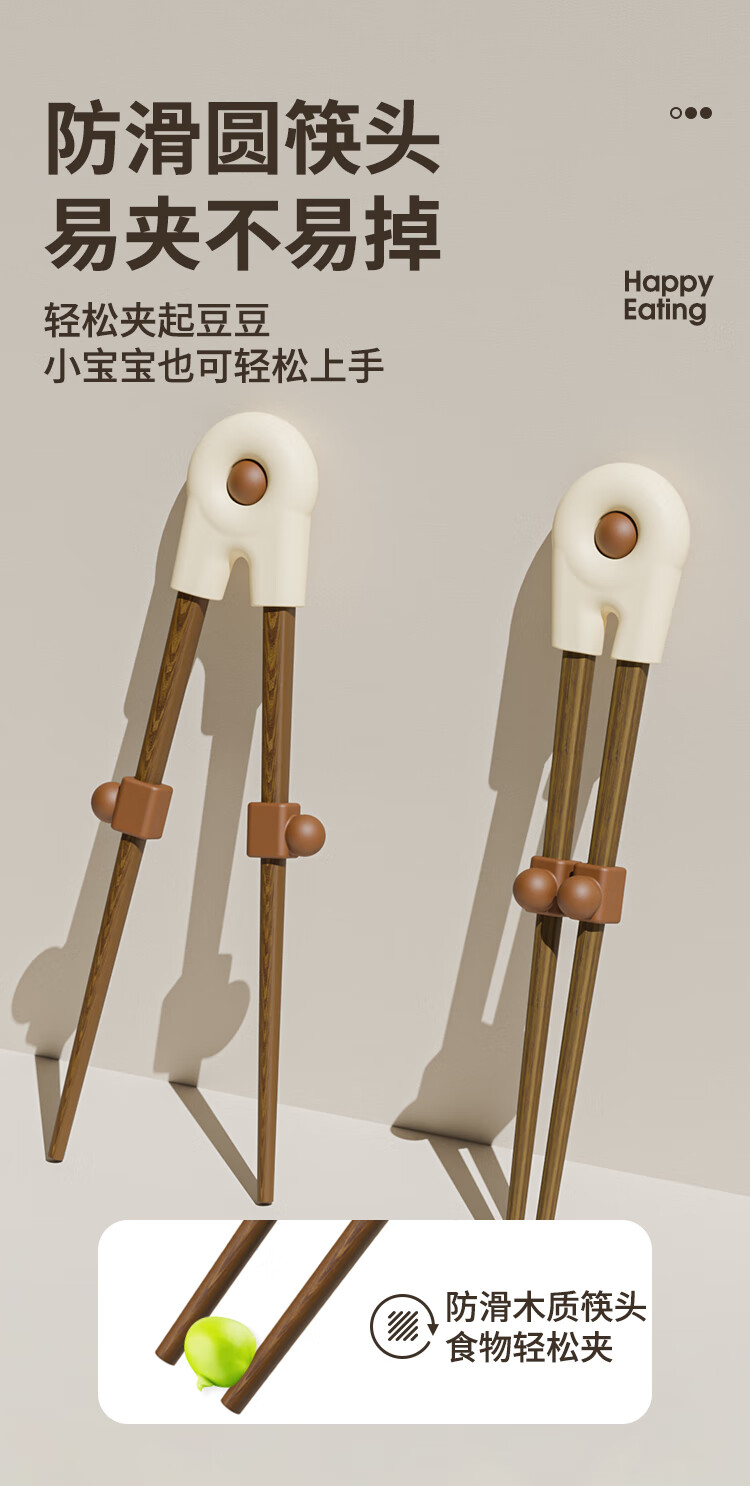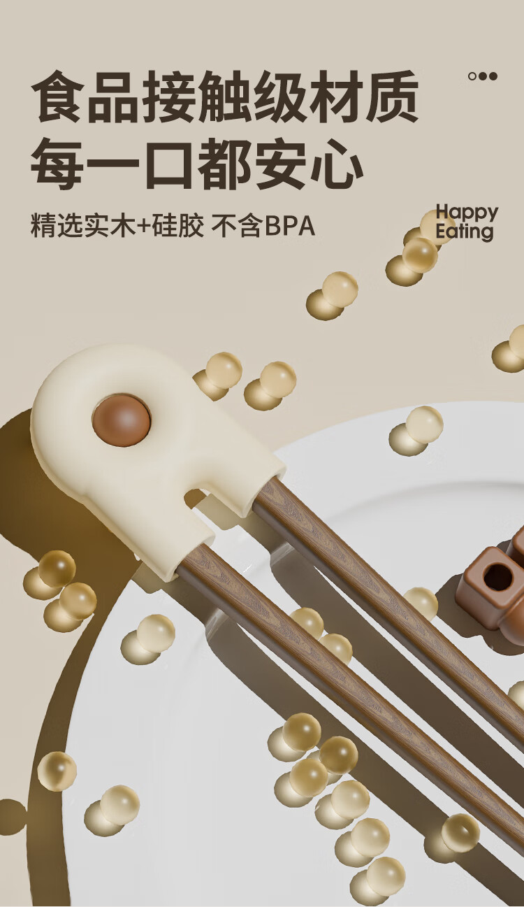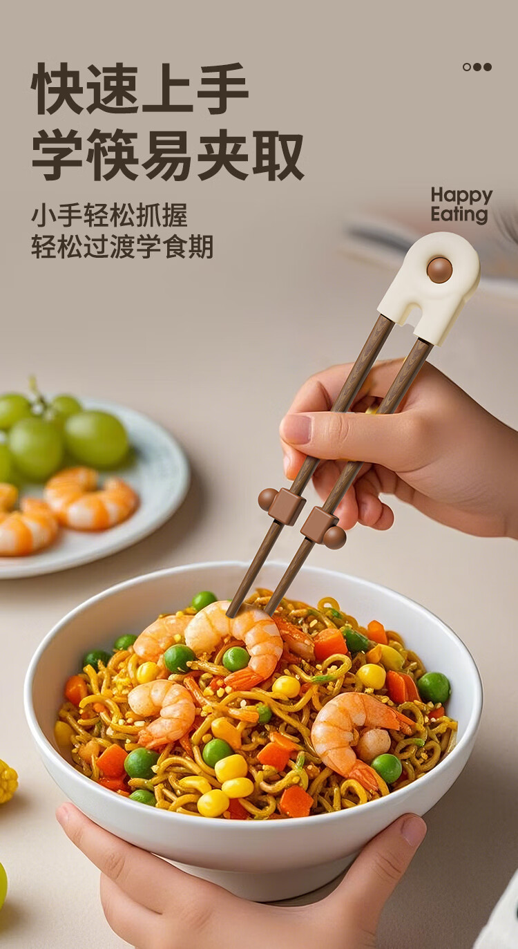 COOKSS儿童筷子训练筷3岁6岁宝宝家用木质辅助器硅胶鸡翅木学习筷收纳盒