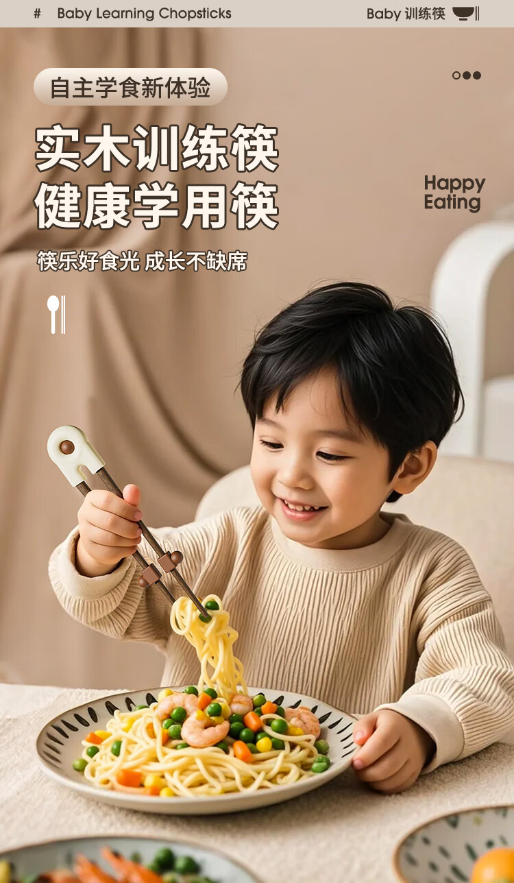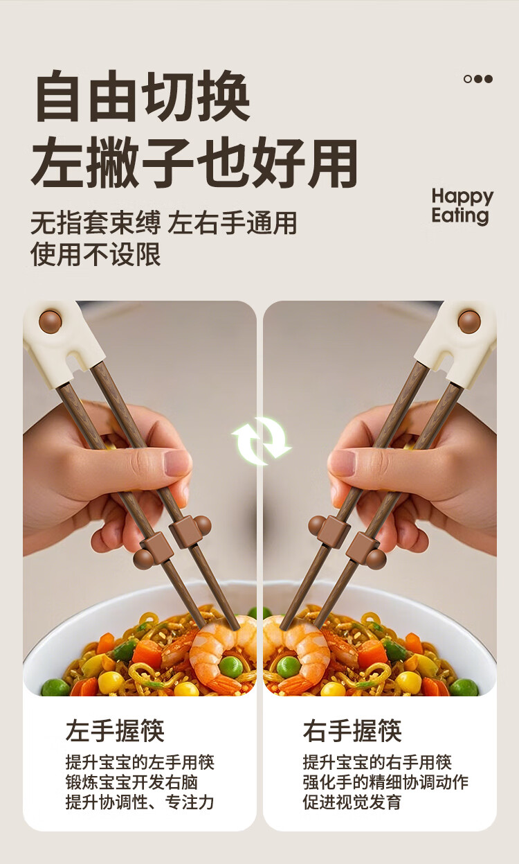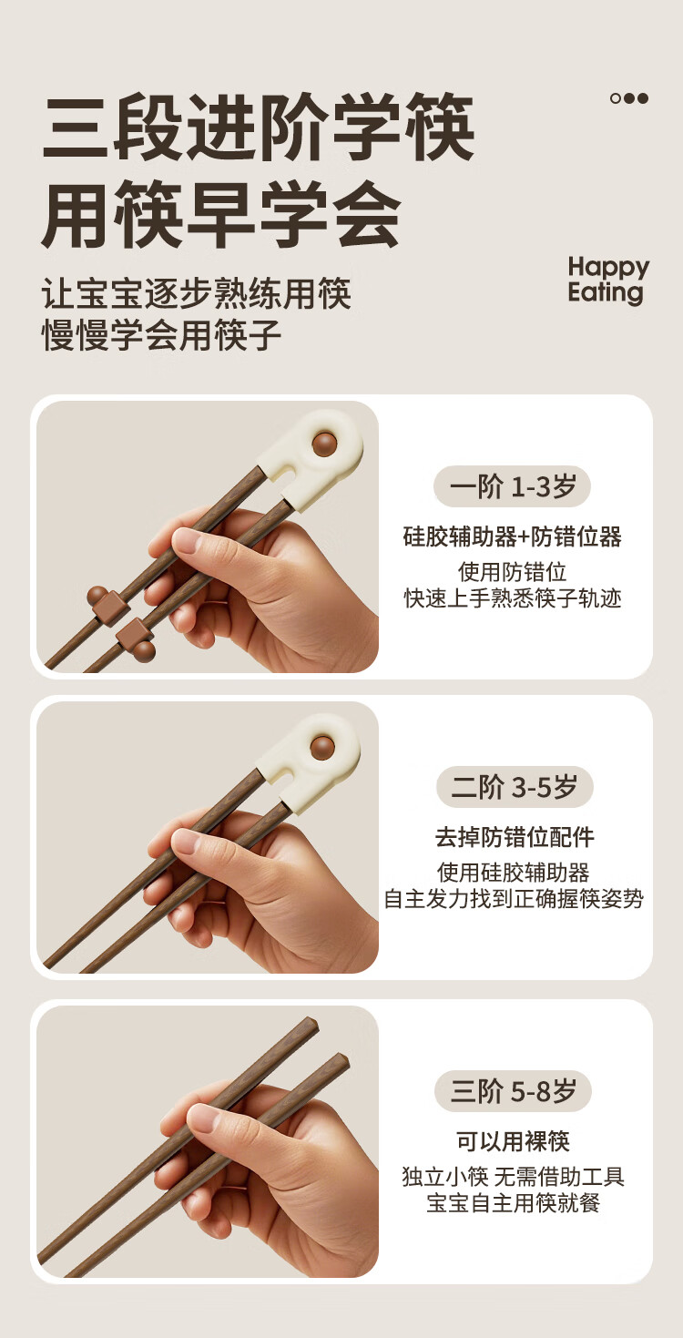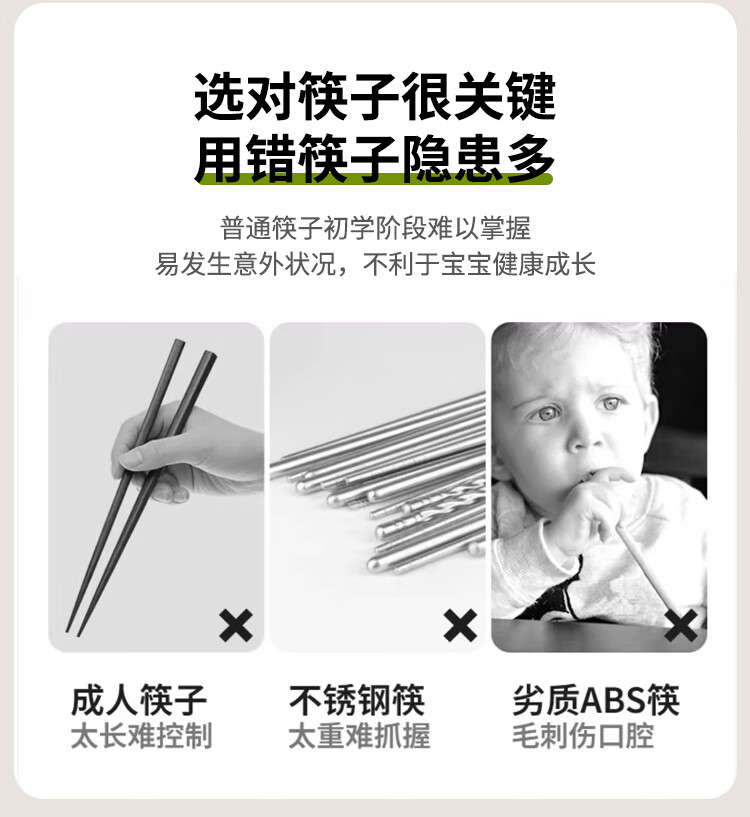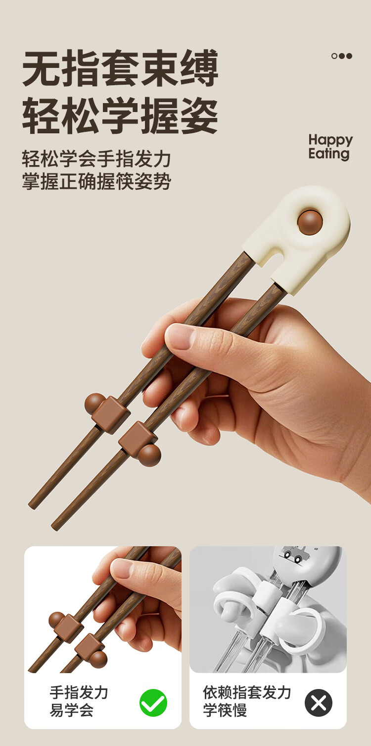 COOKSS儿童筷子训练筷3岁6岁宝宝家用木质辅助器硅胶鸡翅木学习筷收纳盒