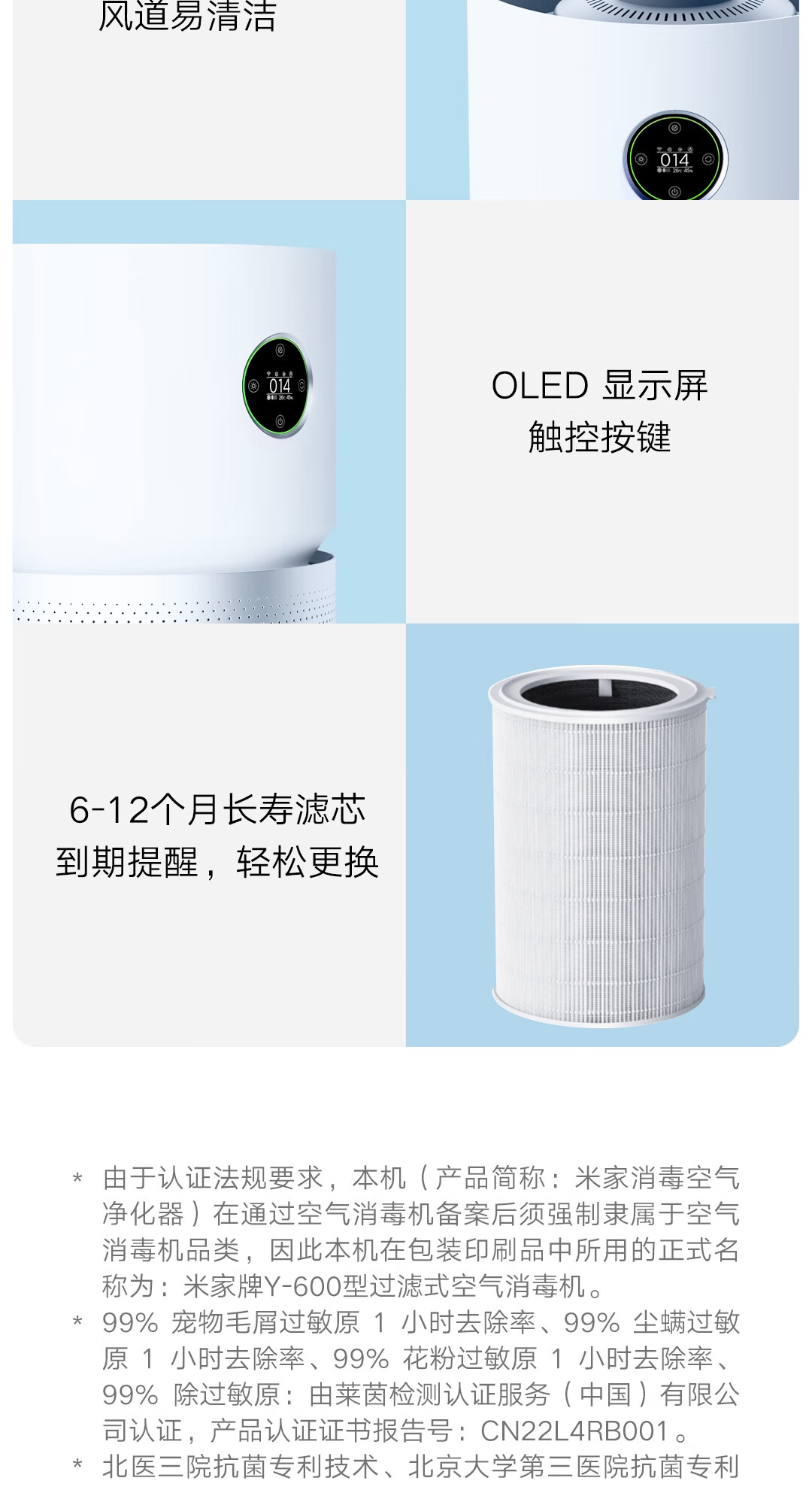 米家【家电】小米Y-600消毒净化机 除过敏源除异味除菌空气净化器消毒机