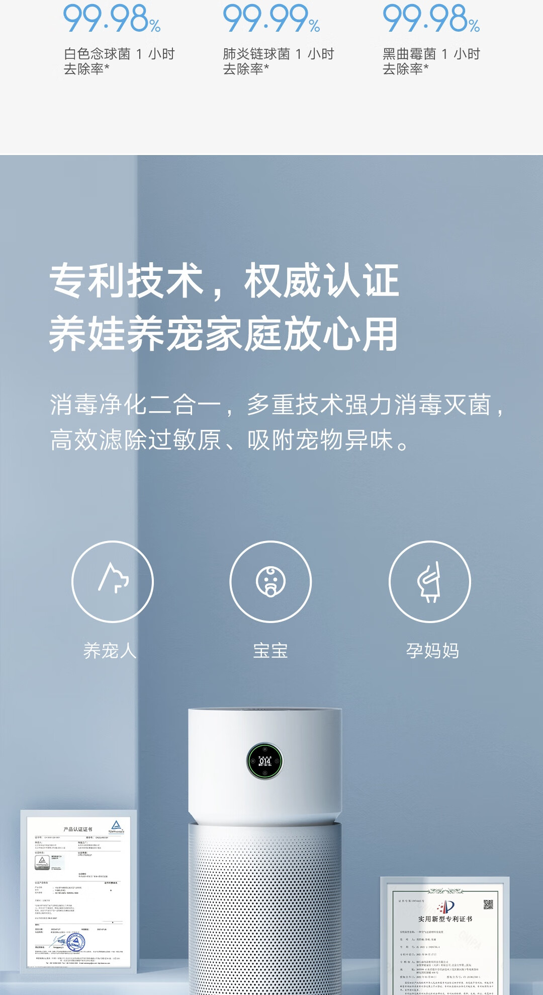 美的空气加湿净化器分解深度除甲醛除异味除菌消毒除花粉