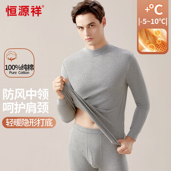 恒源祥秋衣秋裤男士内衣纯棉保暖内衣男中领打底衫秋冬全棉套装