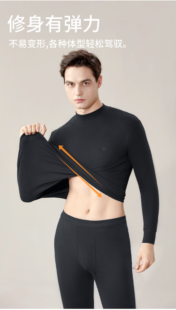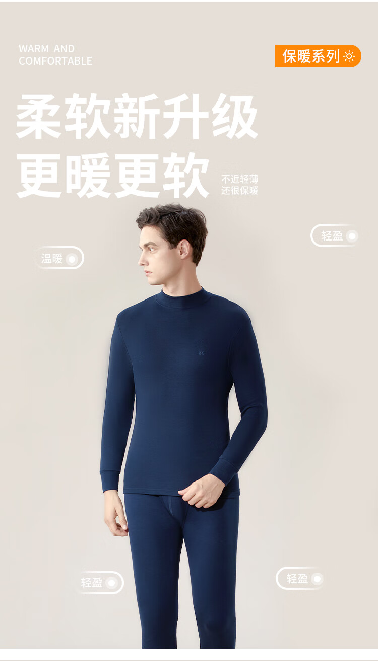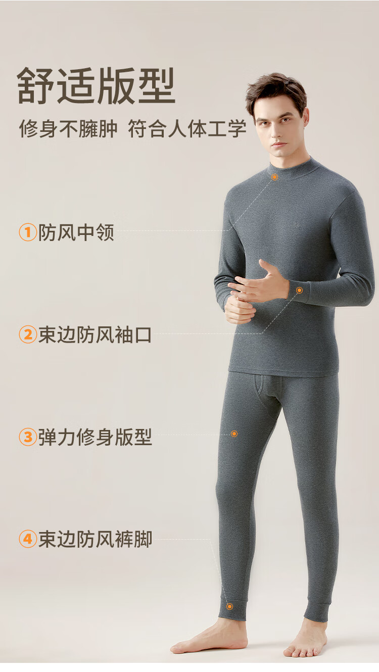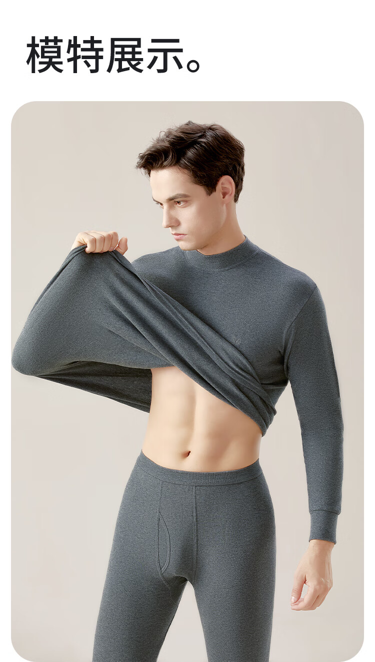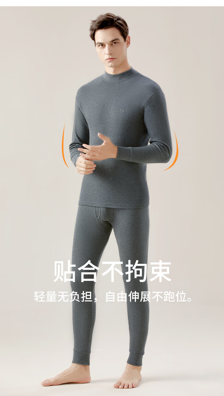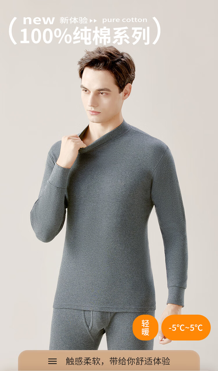 恒源祥秋衣秋裤男士内衣纯棉保暖内衣男中领打底衫秋冬全