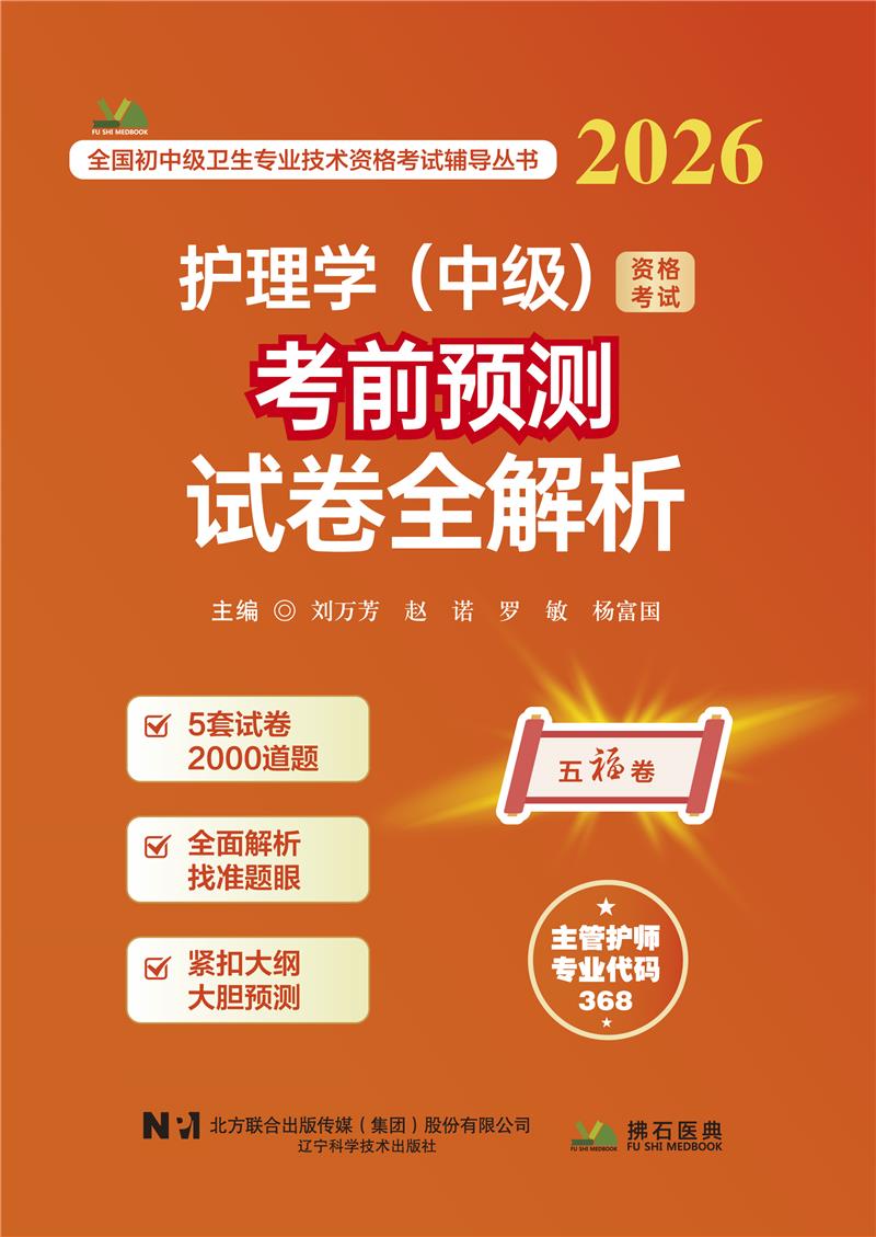 根据国家卫生人才交流考试中心发布的护理学(中级)资格考试大纲,我们组织权威专家精心编写了《护理学(中级)资格考试考前预测试卷全解析》。本书依据考纲要求和命题趋势设计5套预测试卷,每套试卷涵盖四个科目,即科目一至科目四,每个科目设置100道预测考题,全面覆盖考纲核心内容与高频考点。题目由专家团队科学命制,贴近真题风格,每道题目均附有详尽解析,深入讲解答题思路与技巧,帮助考生提前适应考试节奏,系统检测复习效果,有效提升综合应试与临场解题能力。适用于参加2026年护理学(中级)资格考试的考生进行考前模拟自测和强化冲刺,是备考阶段的重要辅导用书。