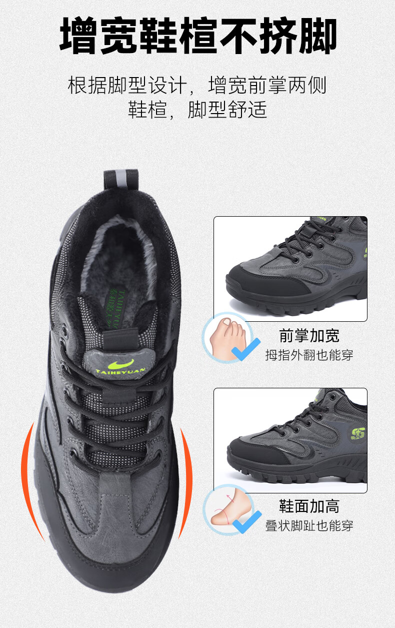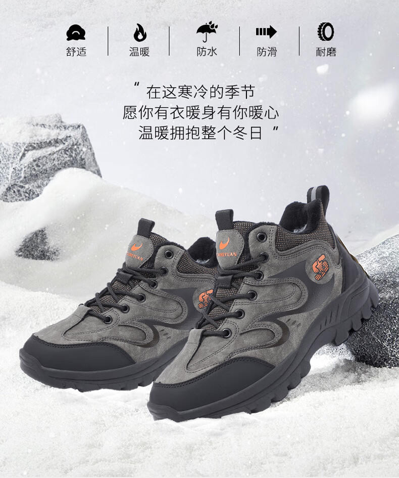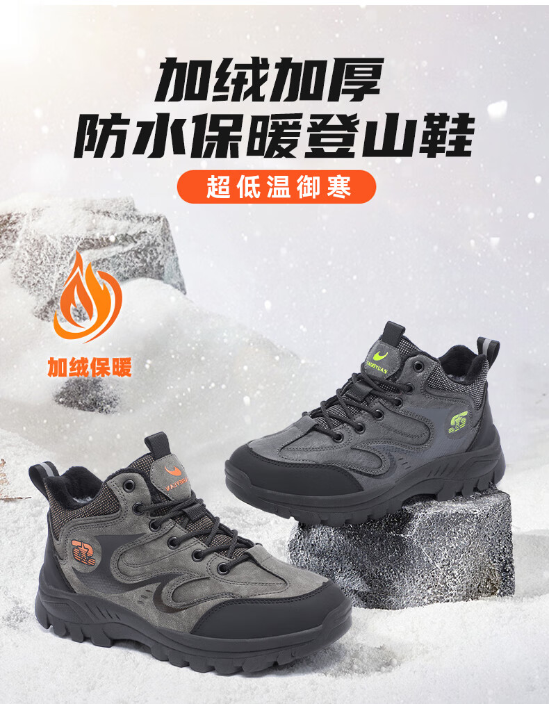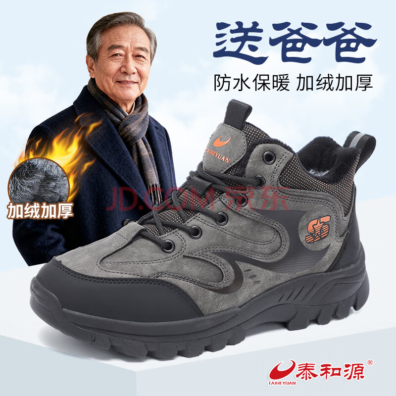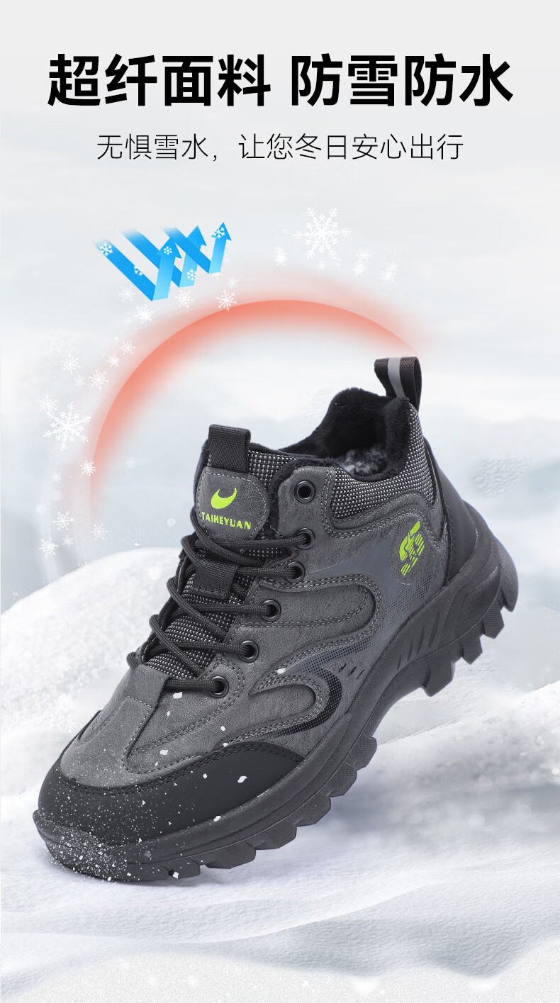 泰和源冬季男士加绒加厚防水保暖棉鞋EVA厚底防滑中老年户外运动登山鞋