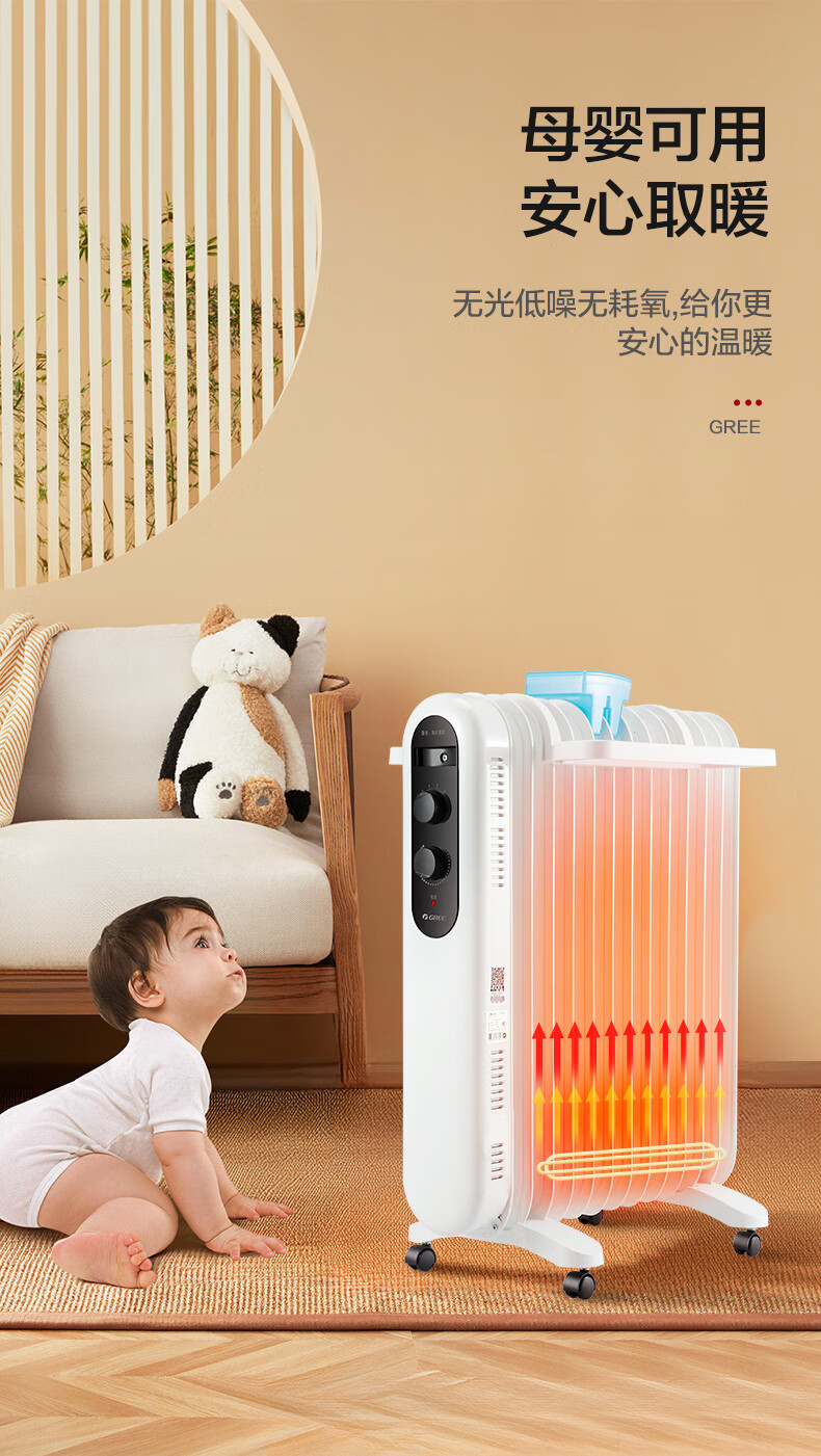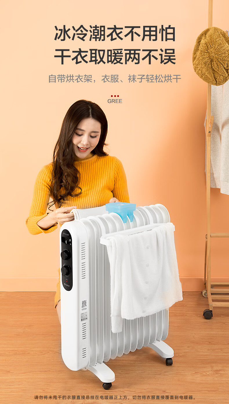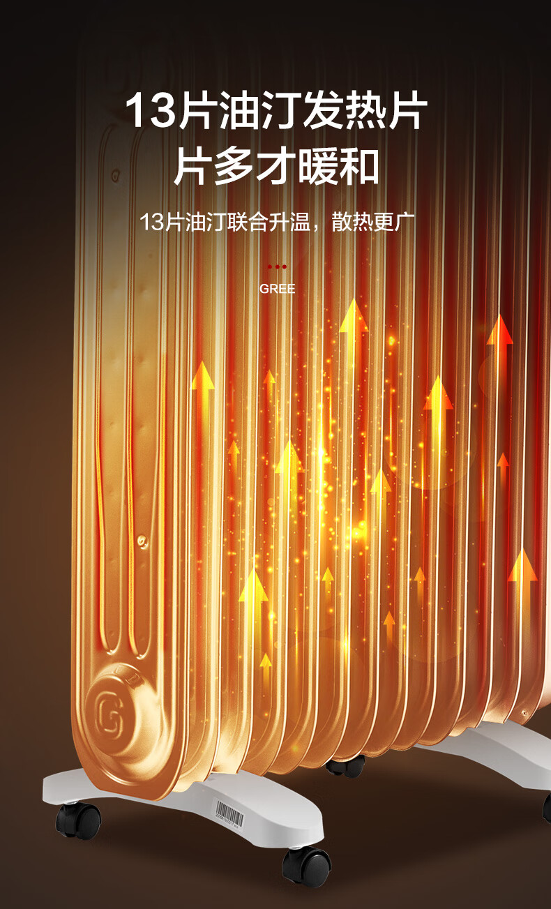 格力(GREE)取暖器电油汀家用电暖器片13片加宽油丁防烫