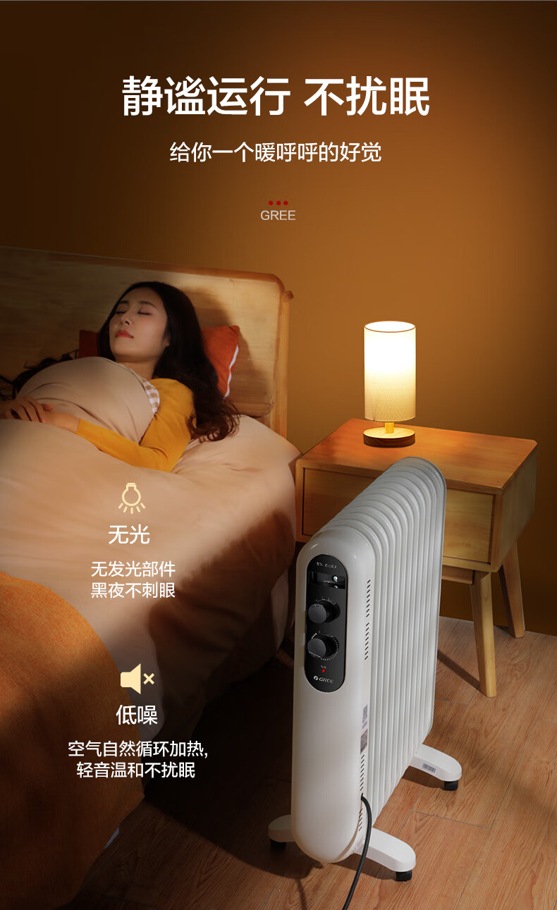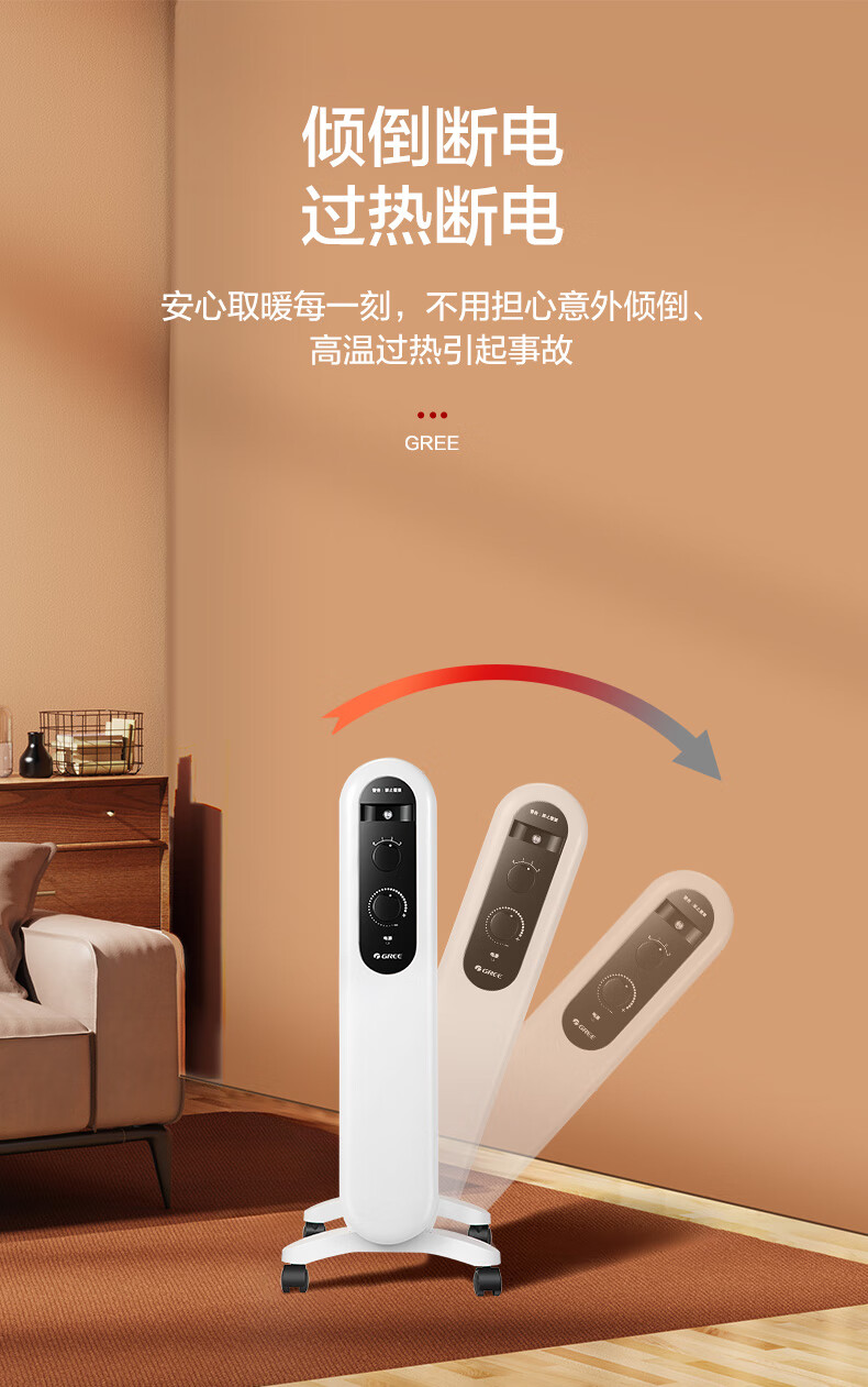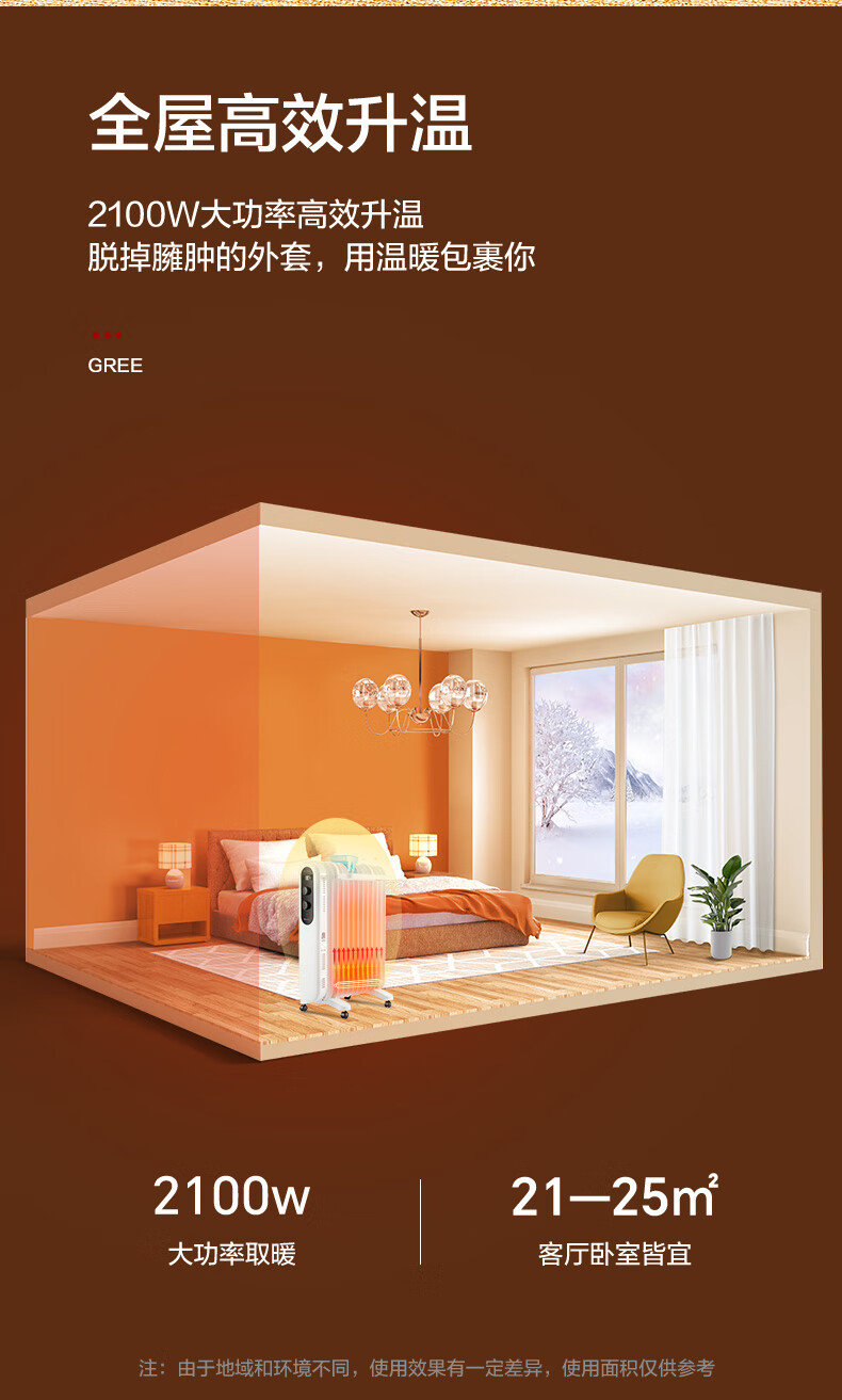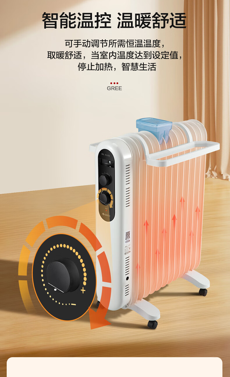 格力(GREE)取暖器电油汀家用电暖器片13片加宽油丁防烫