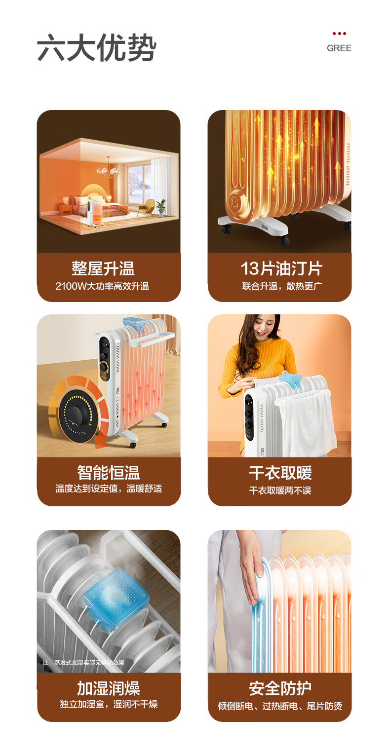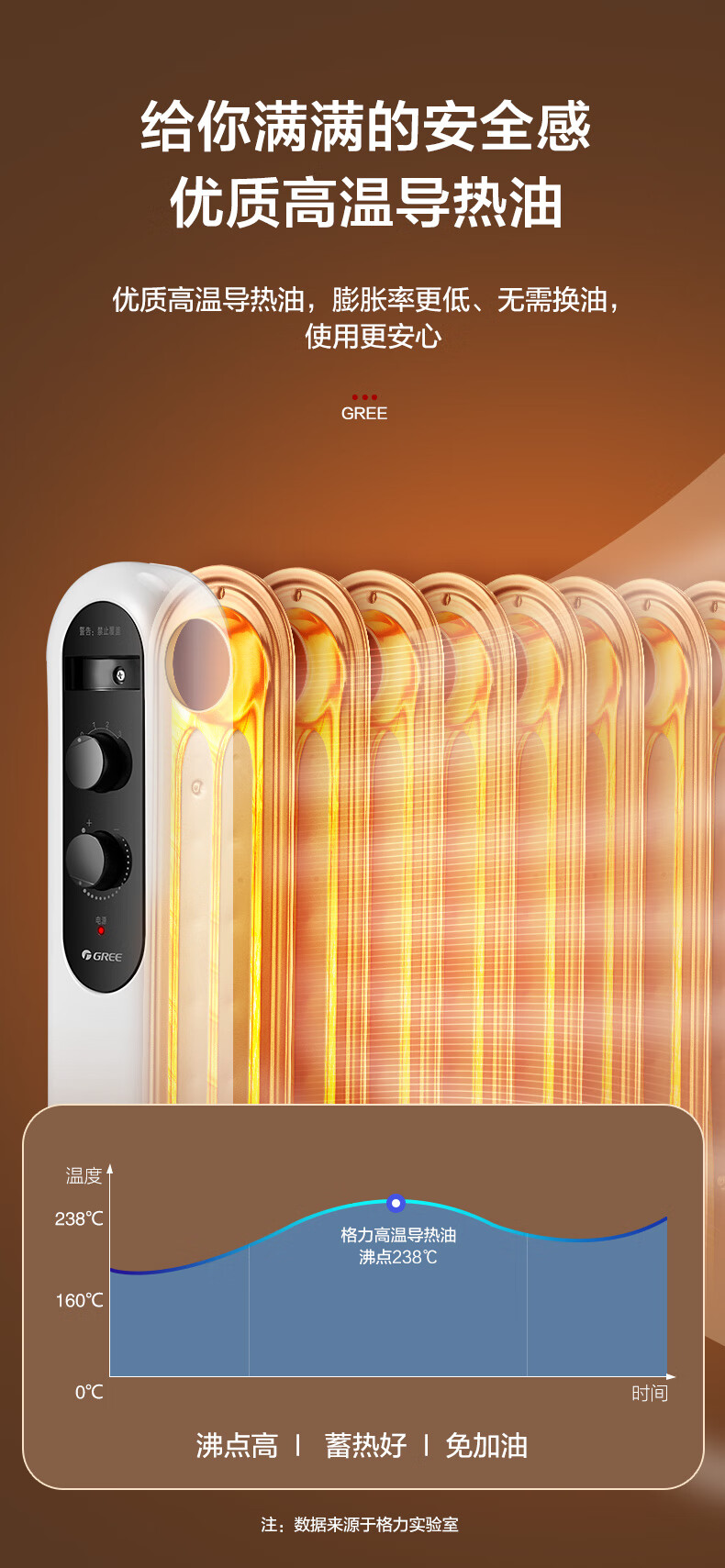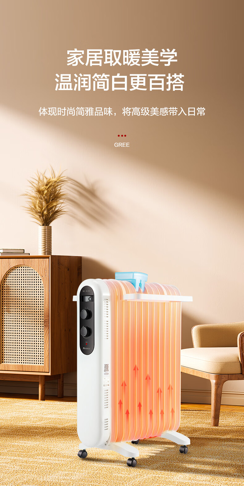 格力(GREE)石墨烯电油汀家用电暖器片13片油丁加宽防烫
