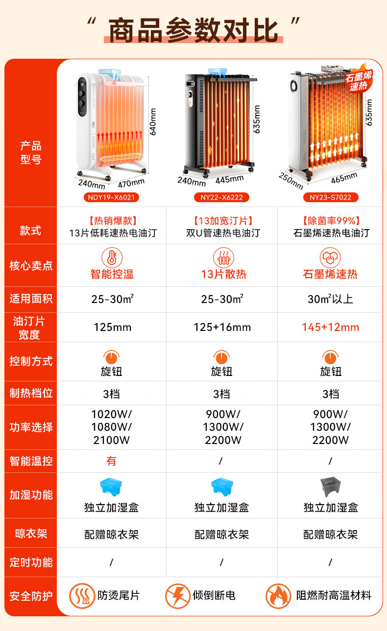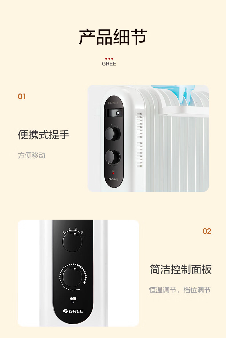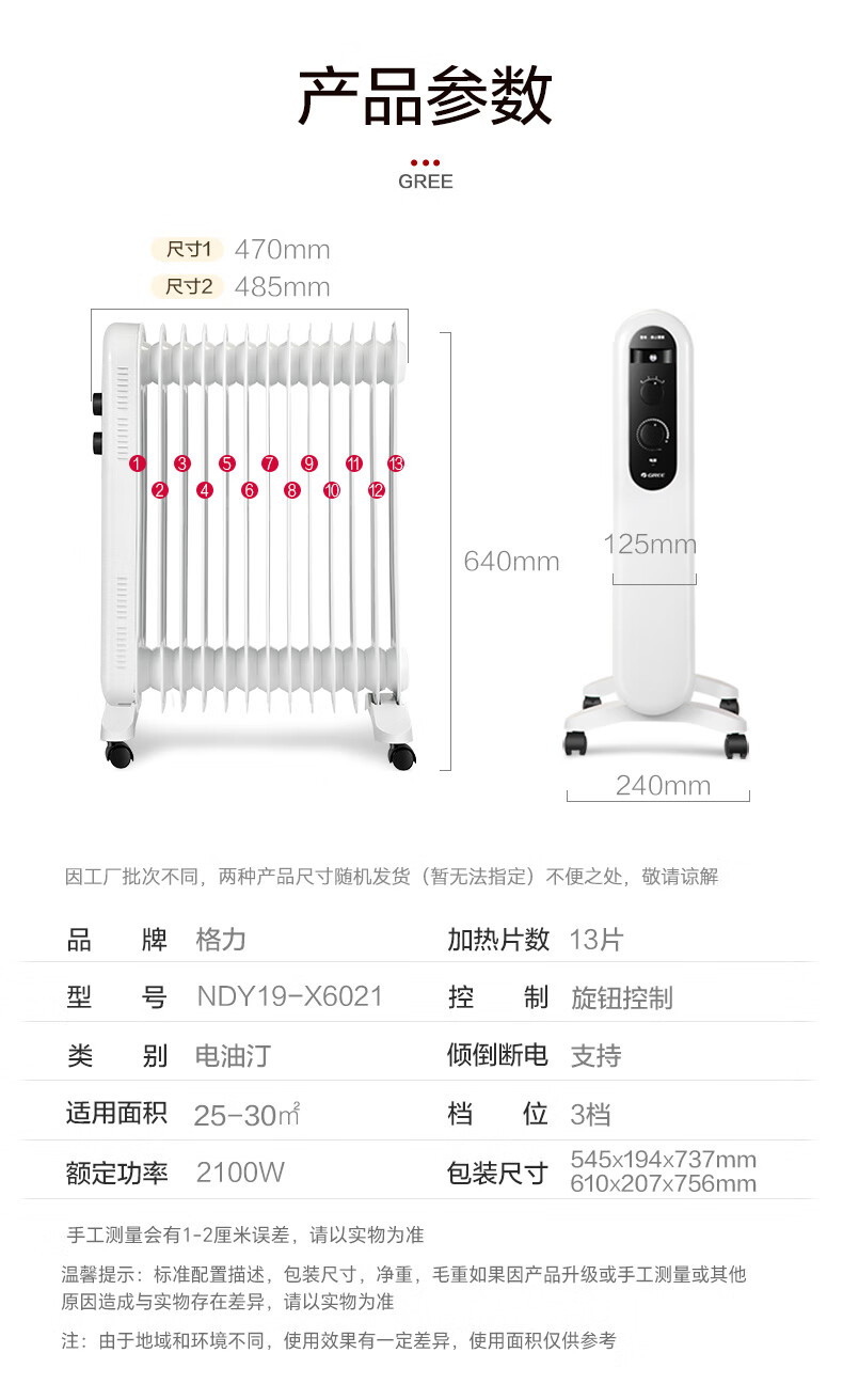 格力(GREE)取暖器电油汀家用电暖器片13片加宽油丁防烫电暖气片NDY19-X6021