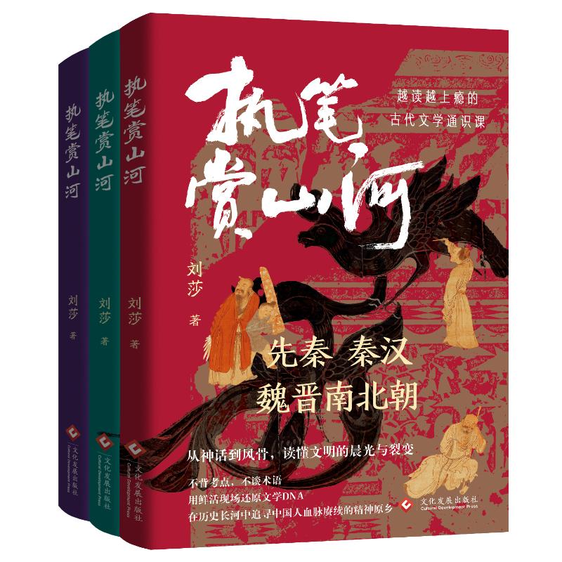 《执笔赏山河》一套三册,是以时间为轴线、以文学演变为脉络的通识读本。全书从“文明觉醒”“盛世气象”“文脉新生”三大主题入手,秉持“轻学术”创作理念,摒弃术语堆砌,代之以鲜活的历史现场,沉浸式探索中国古典文学的基因密码,让读者身临其境感受文学的温度。