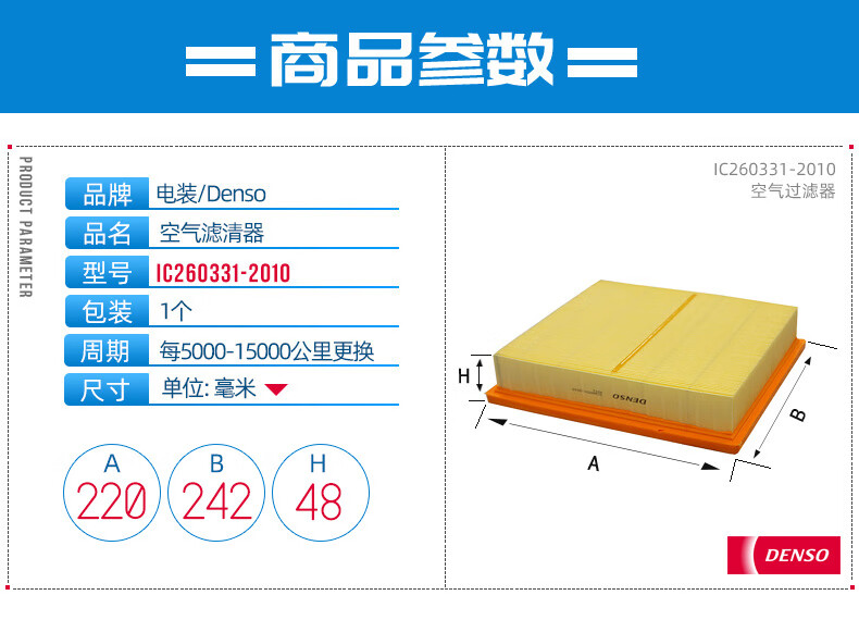 电装空气滤清器*滤芯格260331-2010(八代凯美瑞/亚洲龙/威兰达/RAV4)
