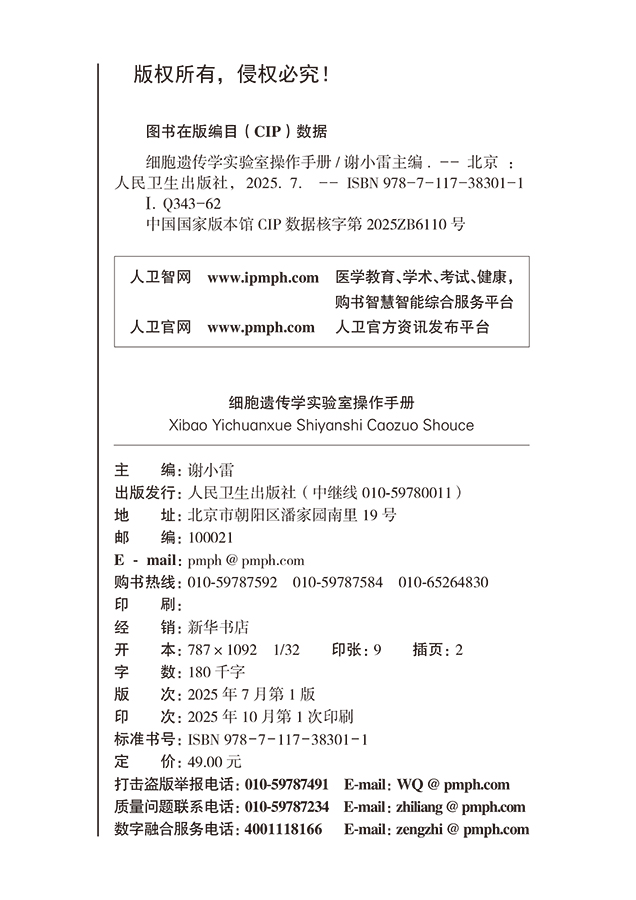 1.全流程深度解析: 系统阐述细胞遗传学实验从基础理论到多种关键技术(G显带、其他显带、原位培养、FISH等)的操作原则、步骤要点及背后原理。 2.聚焦问题解决: 独特剖析 实验室操作各环节存在的实际问题,并提供解决思路与实用建议,强调“问题导向”。 3.操作细节精准: 对关键实验技术(尤其是G显带)的操作要点和潜在难点进行详尽指导,提升实验成功率与结果可靠性。